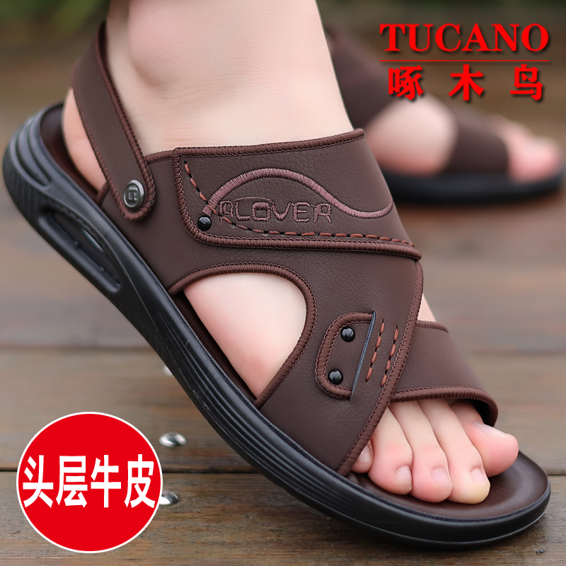 啄木鸟 Летние сандалии, нескользящая пляжная обувь на платформе, тапочки, из натуральной кожи, мягкая подошва