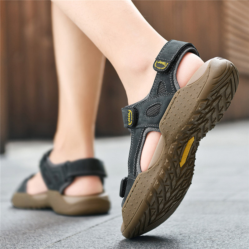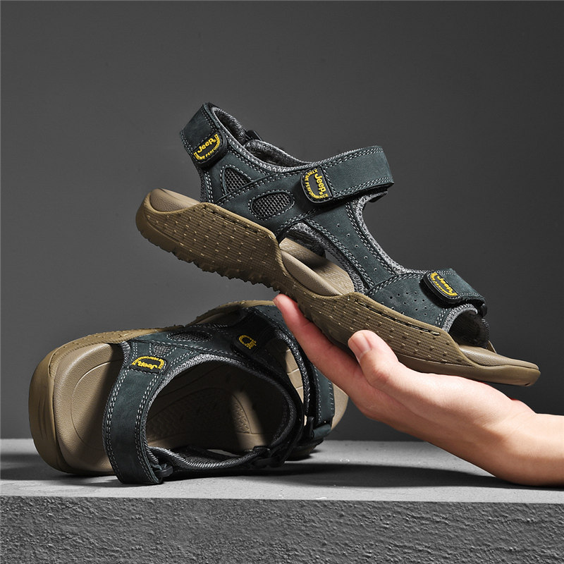 Jeep, летний джип, мужские дышащие дорожные сандалии, нескользящая пляжная обувь, слайдеры, тапочки, из натуральной кожи