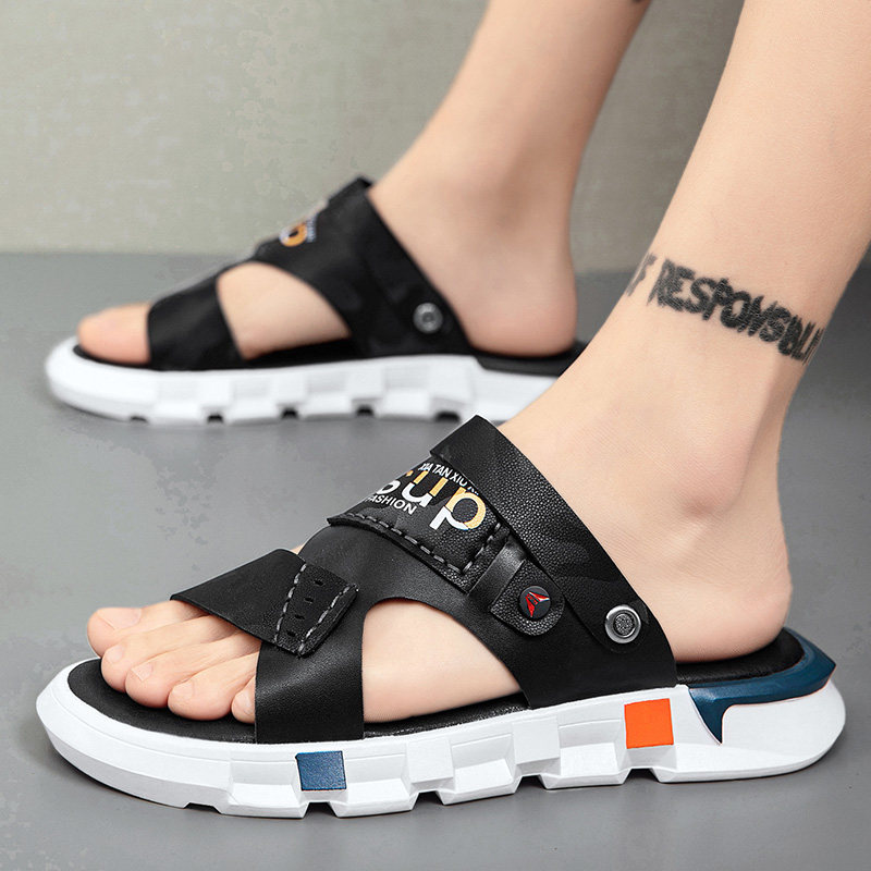 Весенние летние сандалии, пляжная обувь, слайдеры, тапочки, коллекция 2023, из натуральной кожи