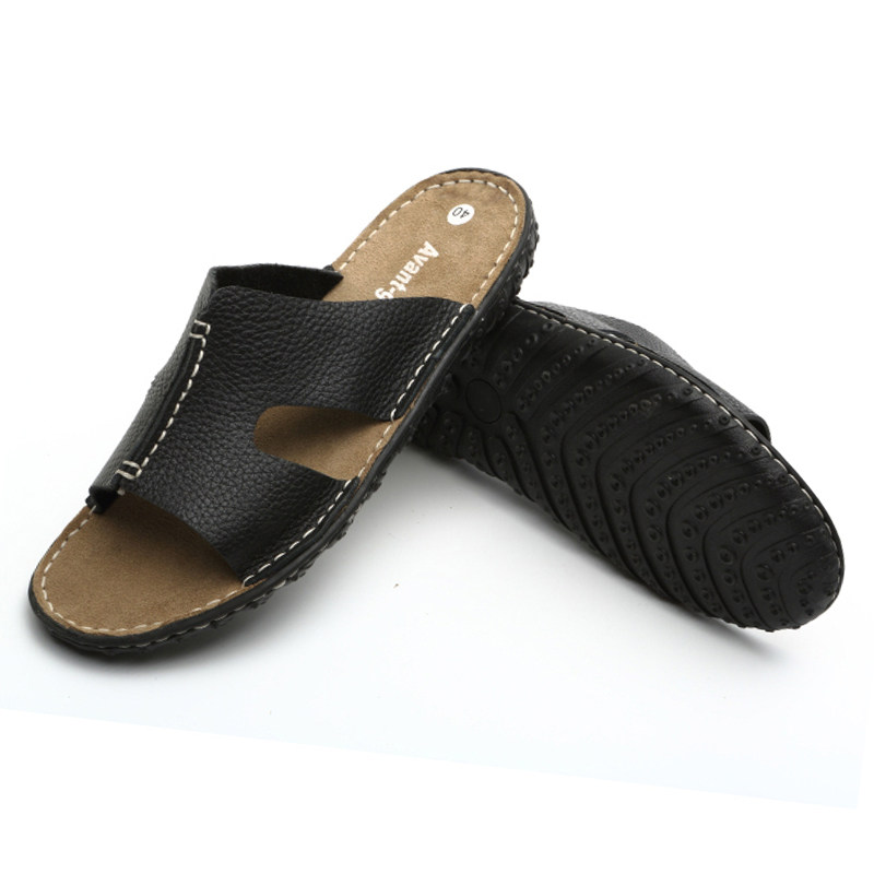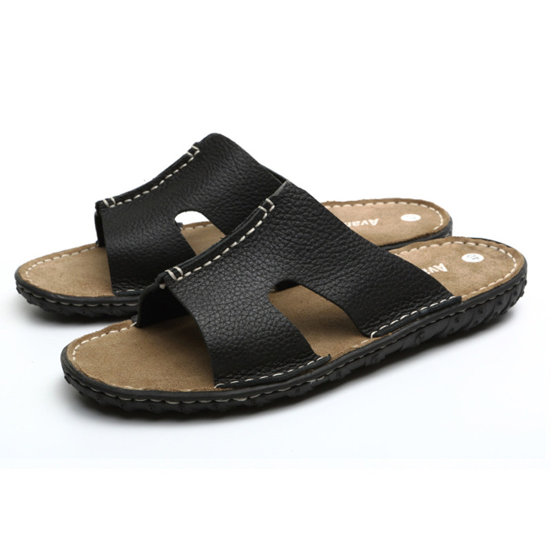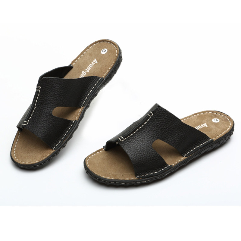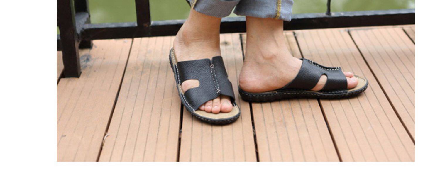 Летние кожаные трендовые пляжные слайдеры, тапочки, дышащая комфортная обувь для отдыха, воловья кожа, из натуральной кожи