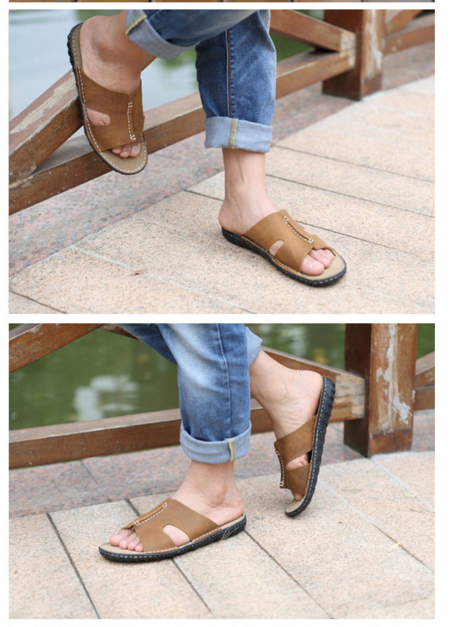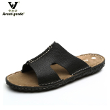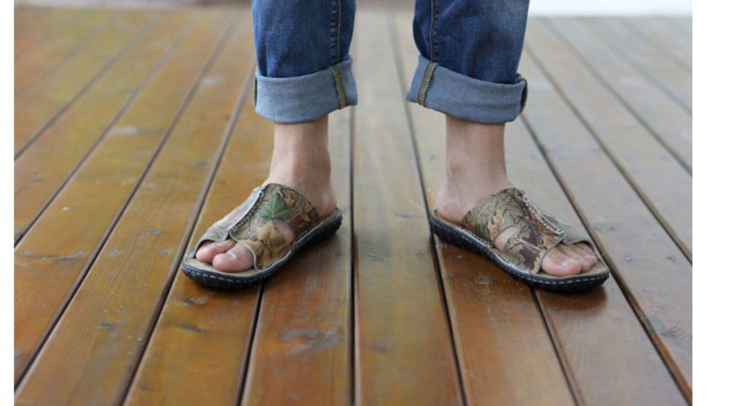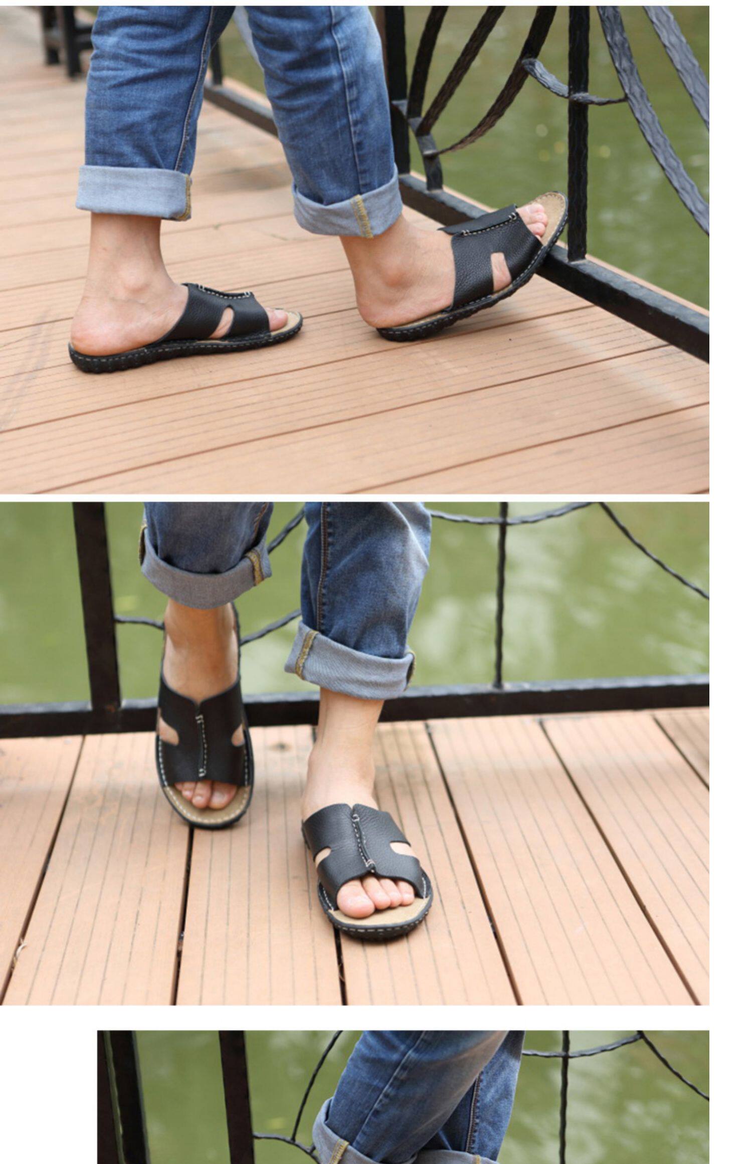 Летние кожаные трендовые пляжные слайдеры, тапочки, дышащая комфортная обувь для отдыха, воловья кожа, из натуральной кожи