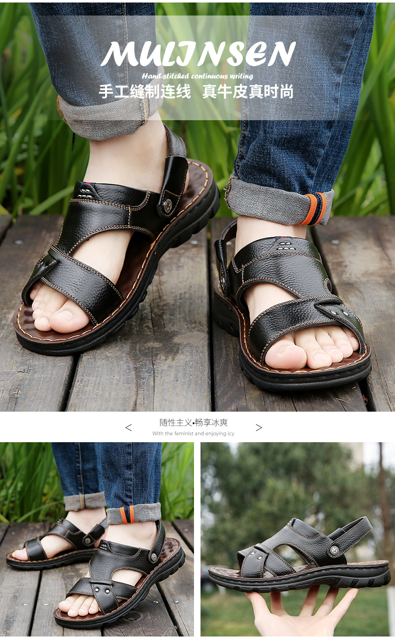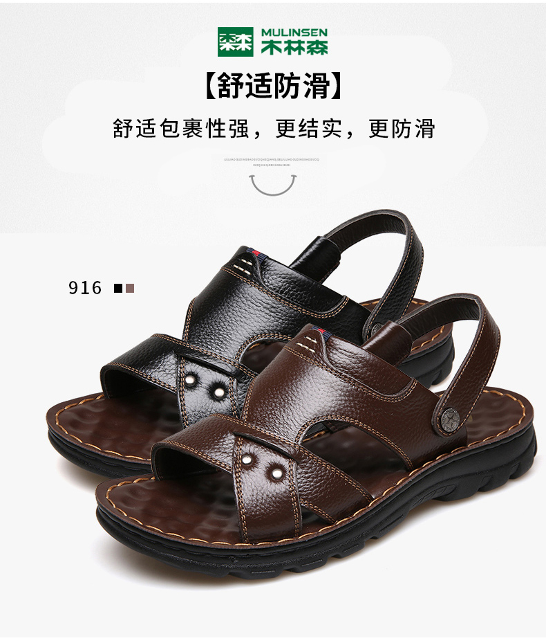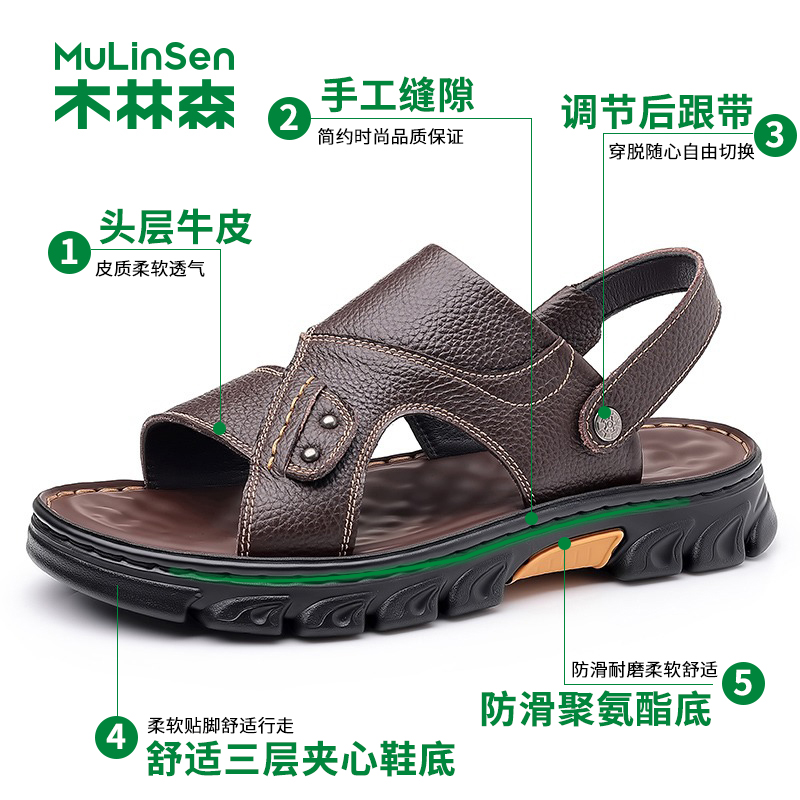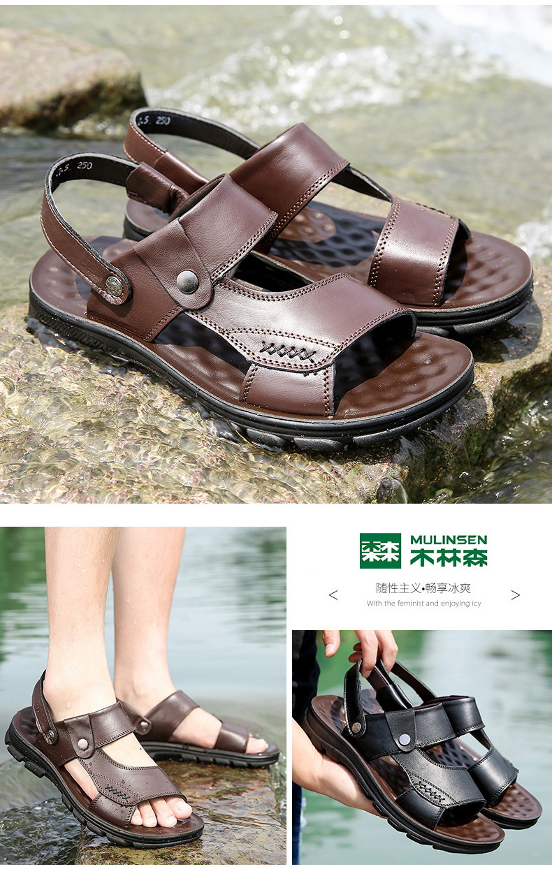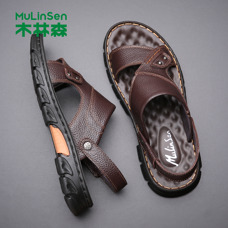木林森 Кожаные сандалии, летняя пляжная обувь для отдыха, слайдеры, тапочки, воловья кожа, из натуральной кожи