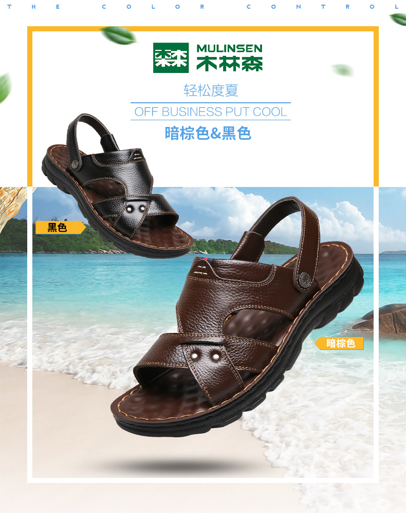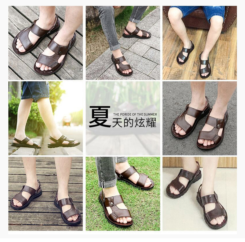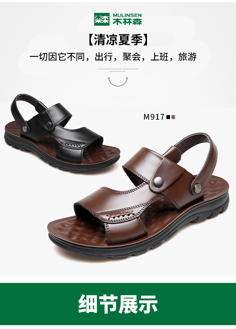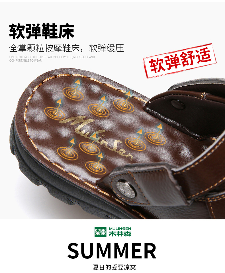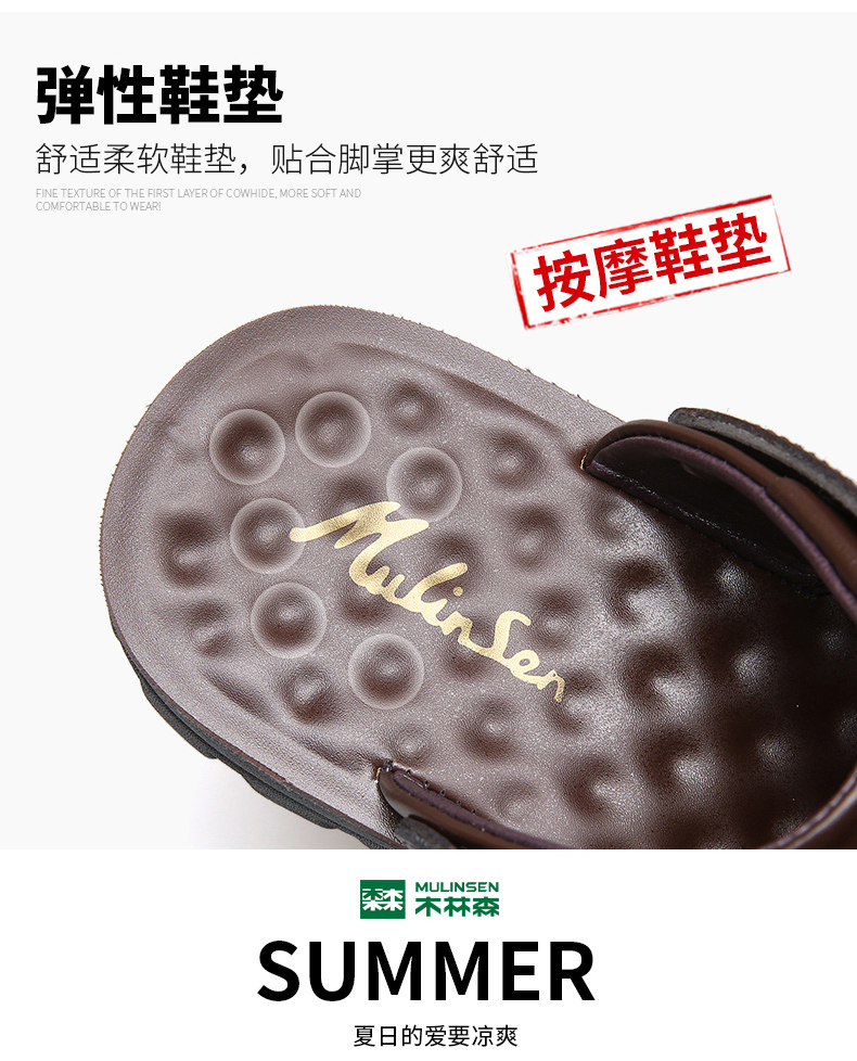 木林森 Кожаные сандалии, летняя пляжная обувь для отдыха, слайдеры, тапочки, воловья кожа, из натуральной кожи