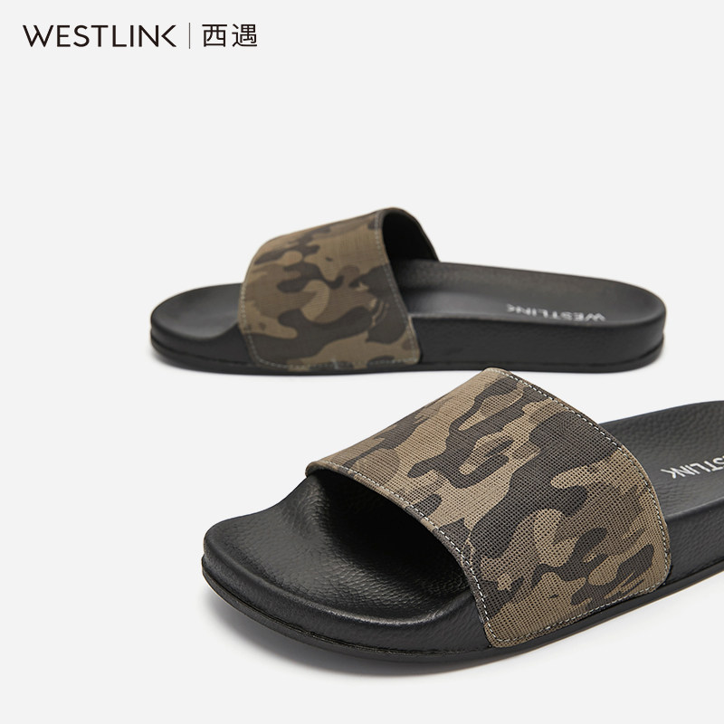 Камуфляжная обувь, трендовые нескользящие модные тапочки, слайдеры, в корейском стиле