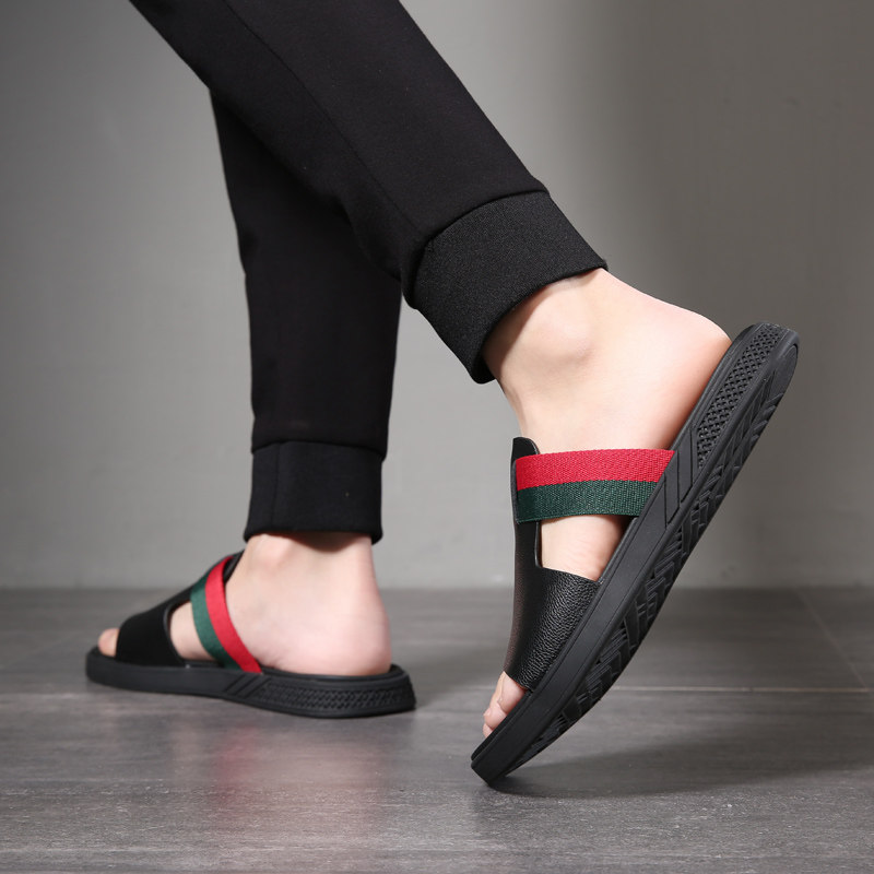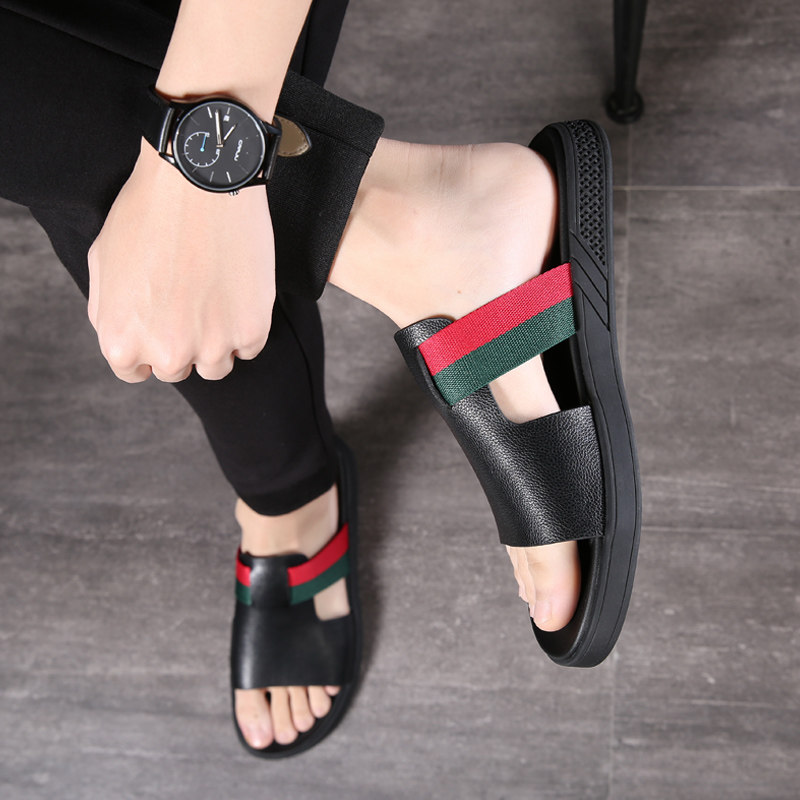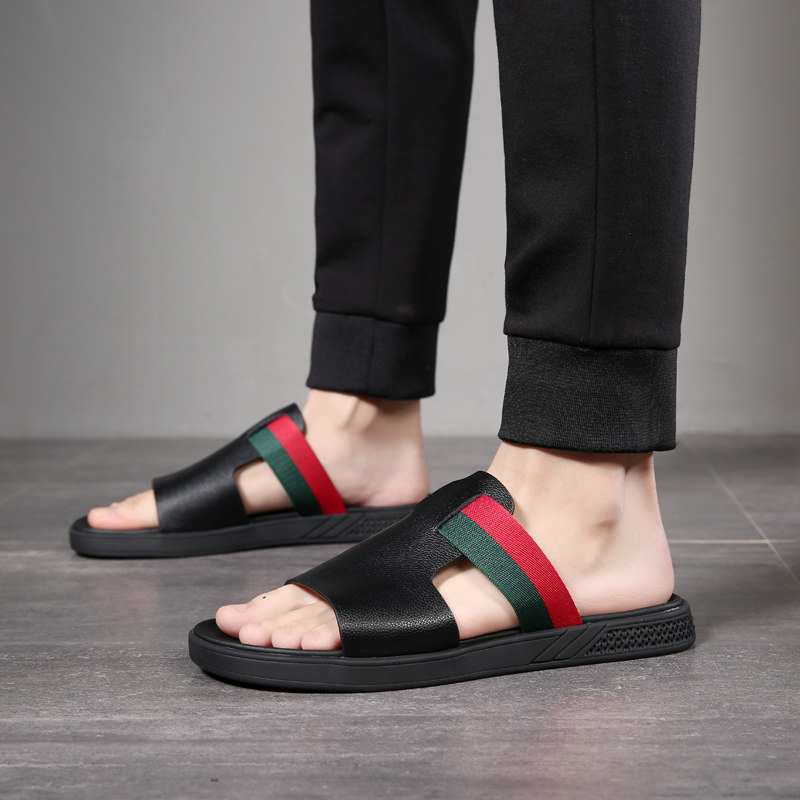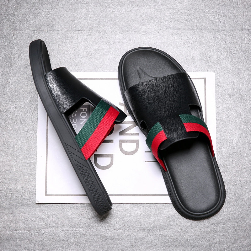 Летние модные нескользящие тапочки, трендовые слайдеры, из натуральной кожи, мягкая подошва, популярно в интернете
