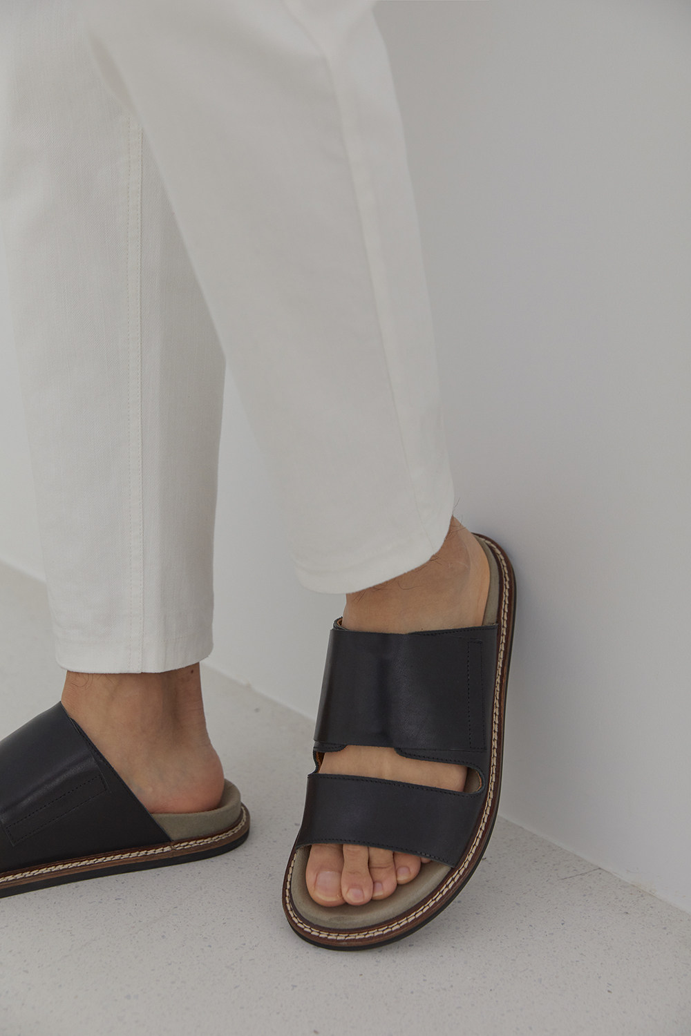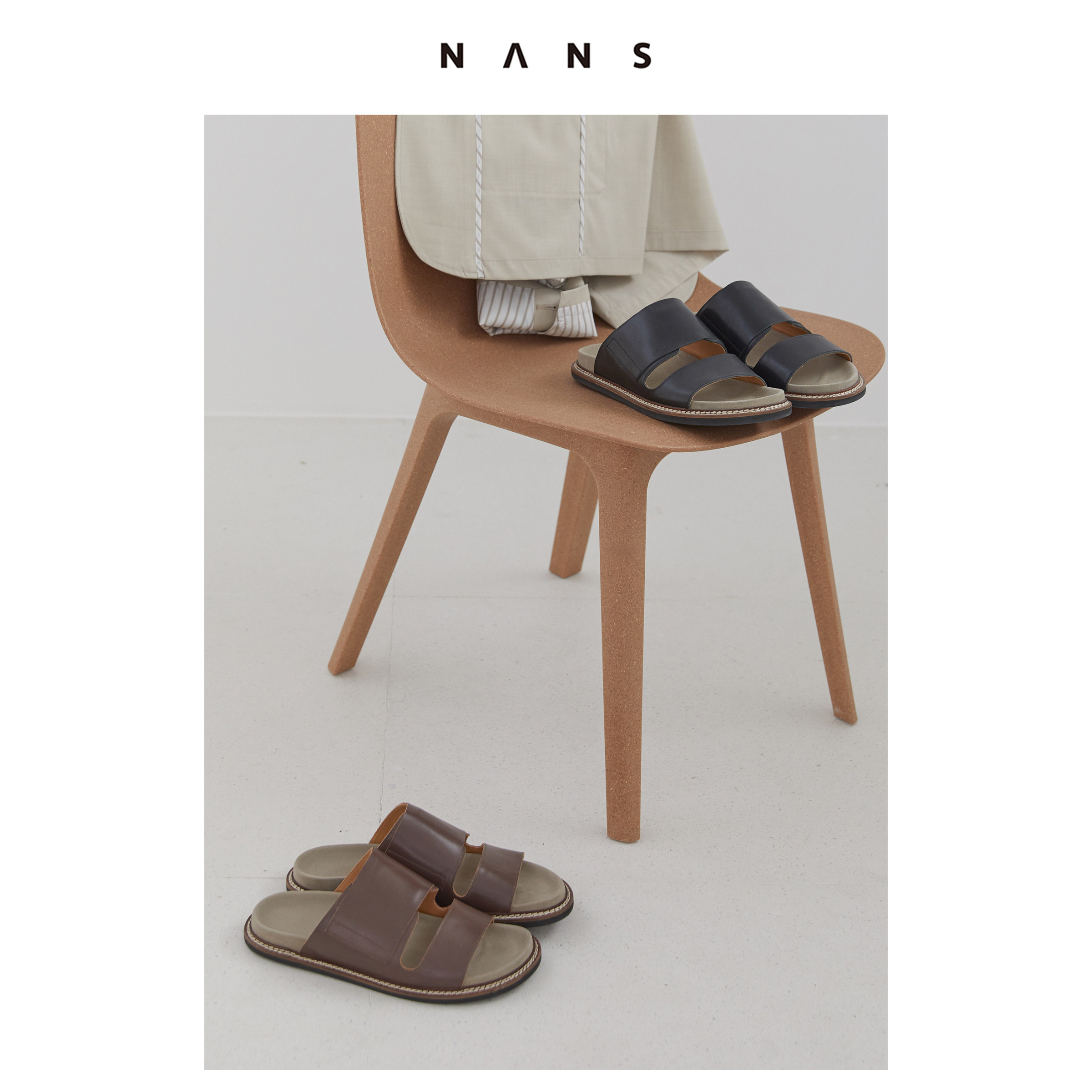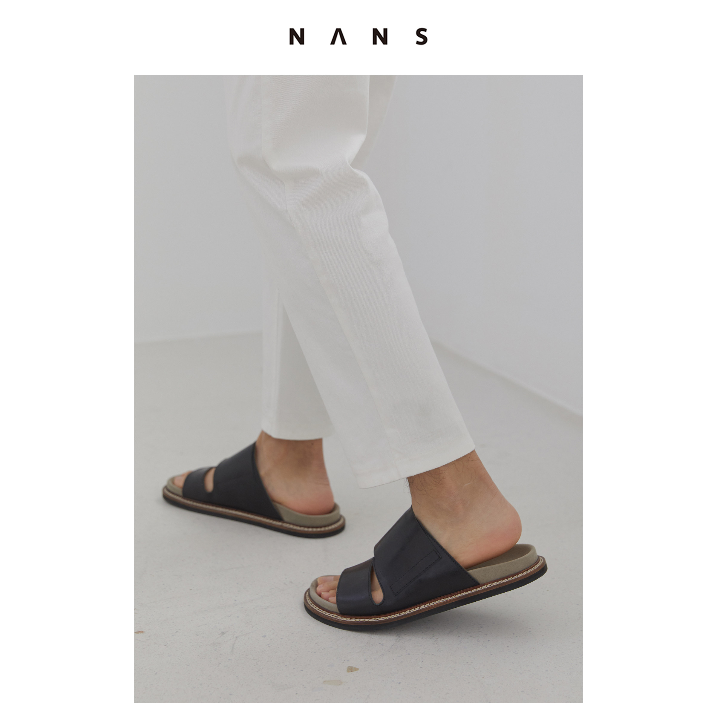 [NANS] Слои головки Cowhide Matching Slippers / Leather Slip -on -on -nsf001