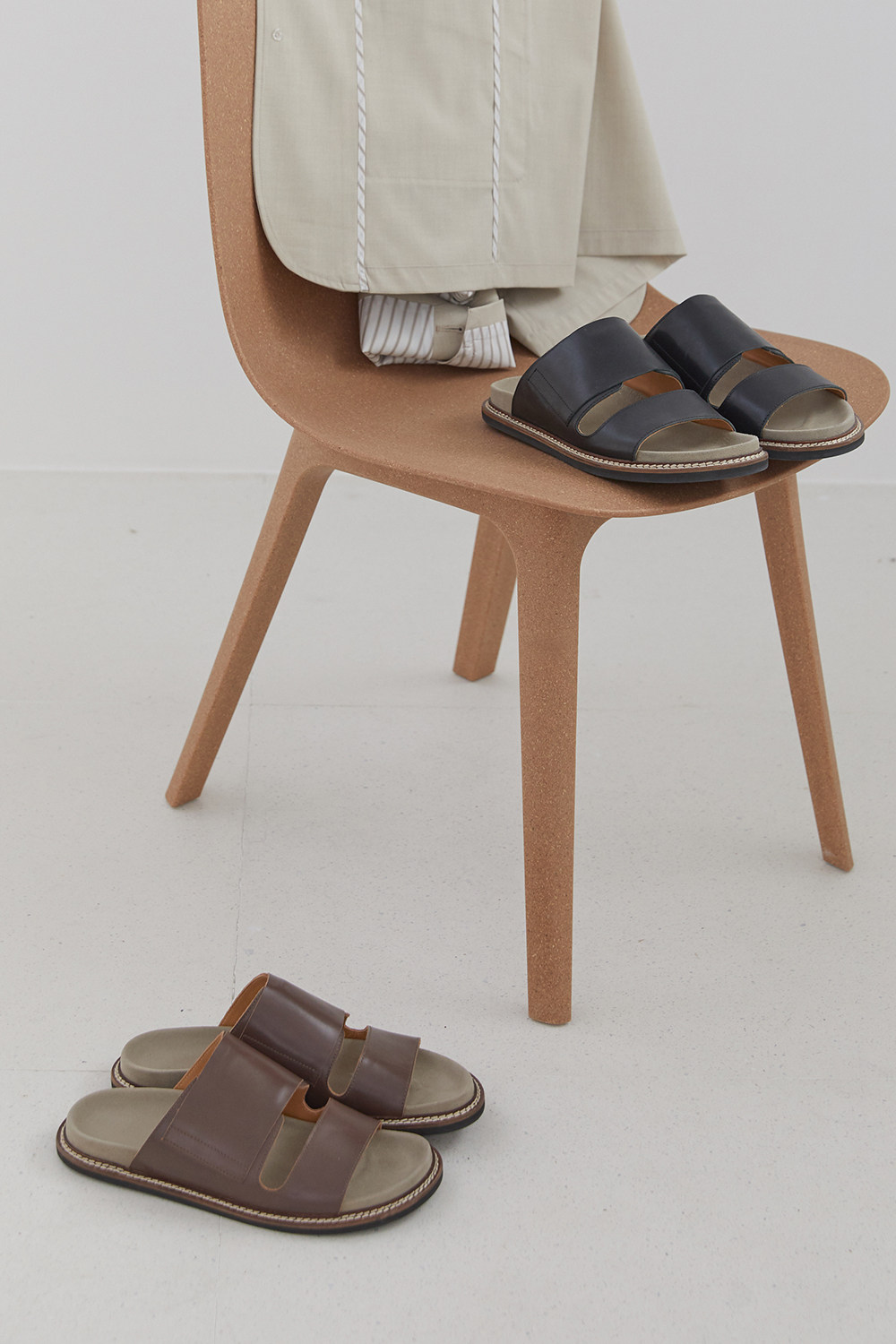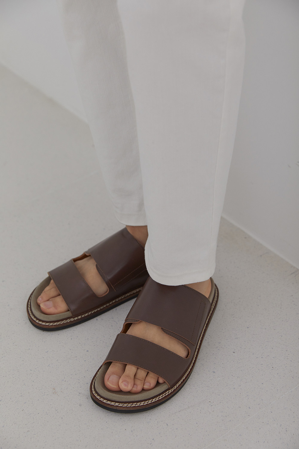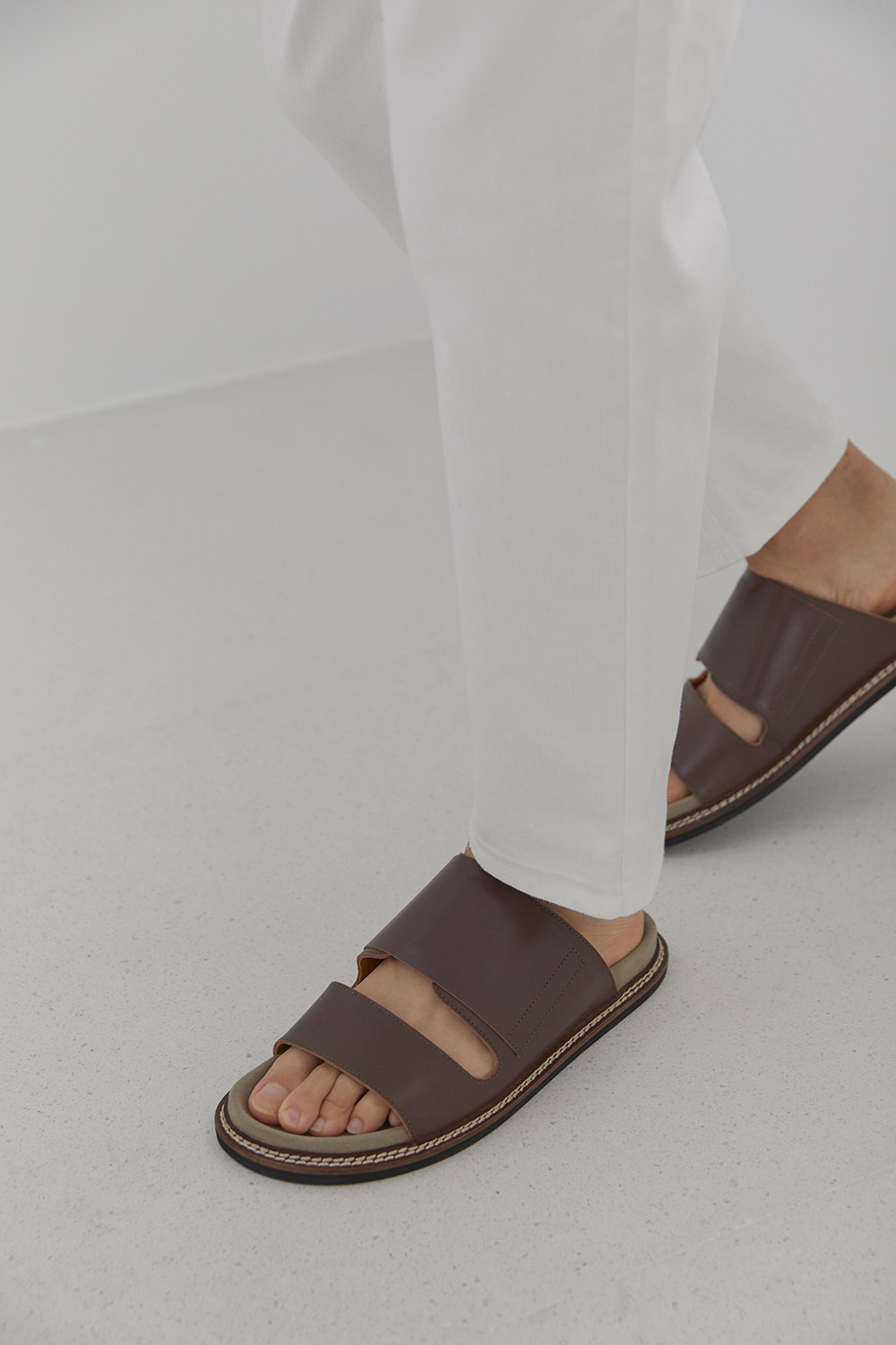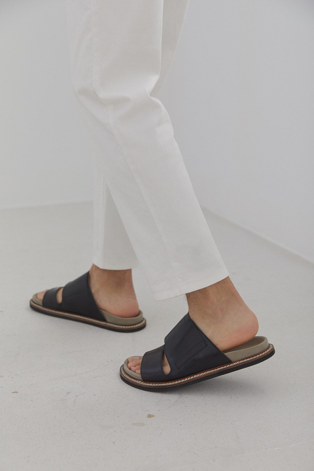 [NANS] Слои головки Cowhide Matching Slippers / Leather Slip -on -on -nsf001