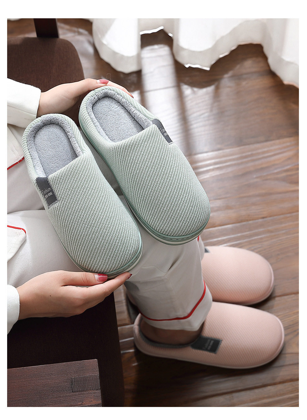 Демисезонные японские тапочки, удерживающая тепло нескользящая обувь для влюбленных, большой размер