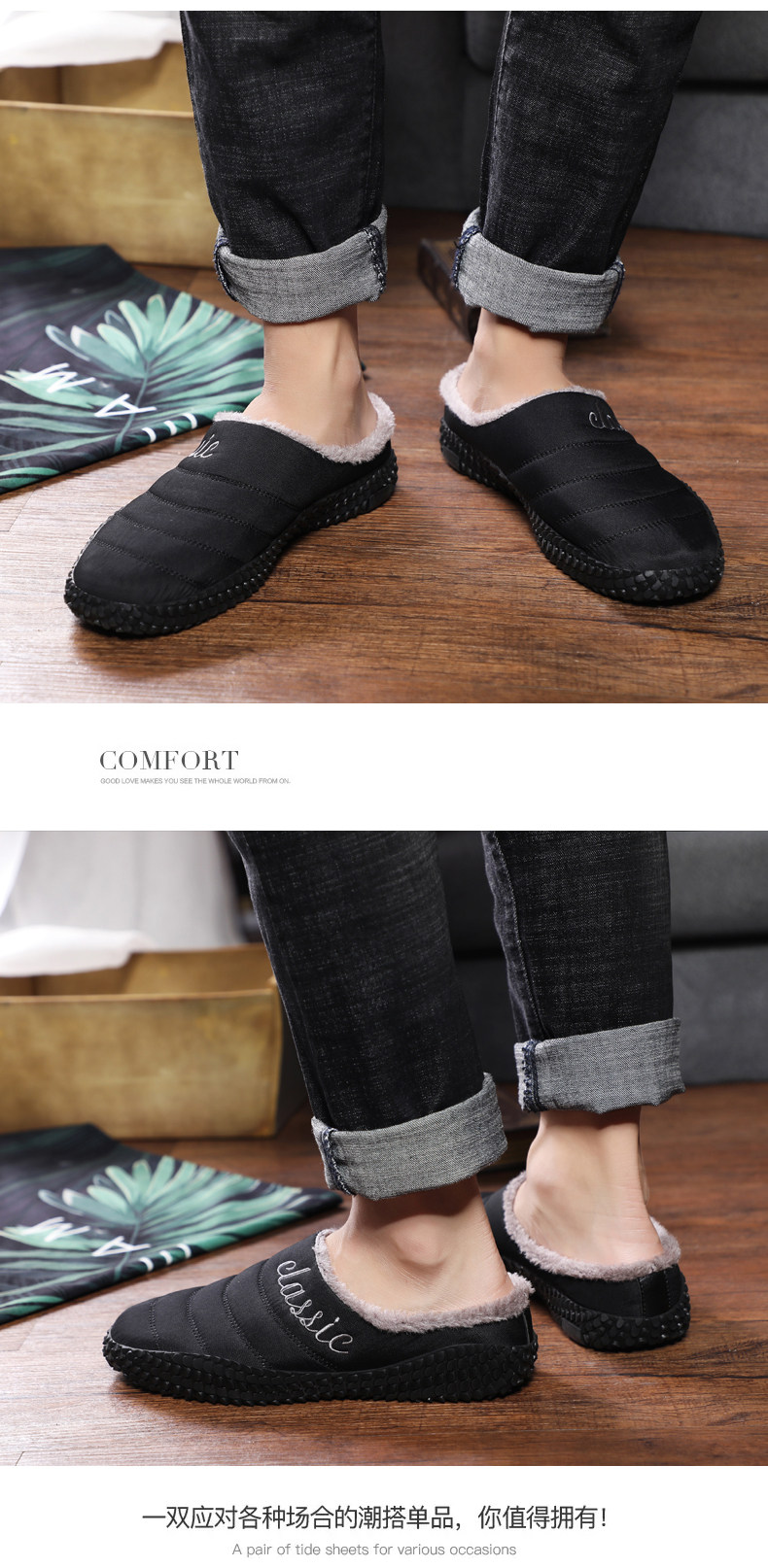 Демисезонные удерживающие тепло нескользящие тапочки, туфли для отдыха, большой размер