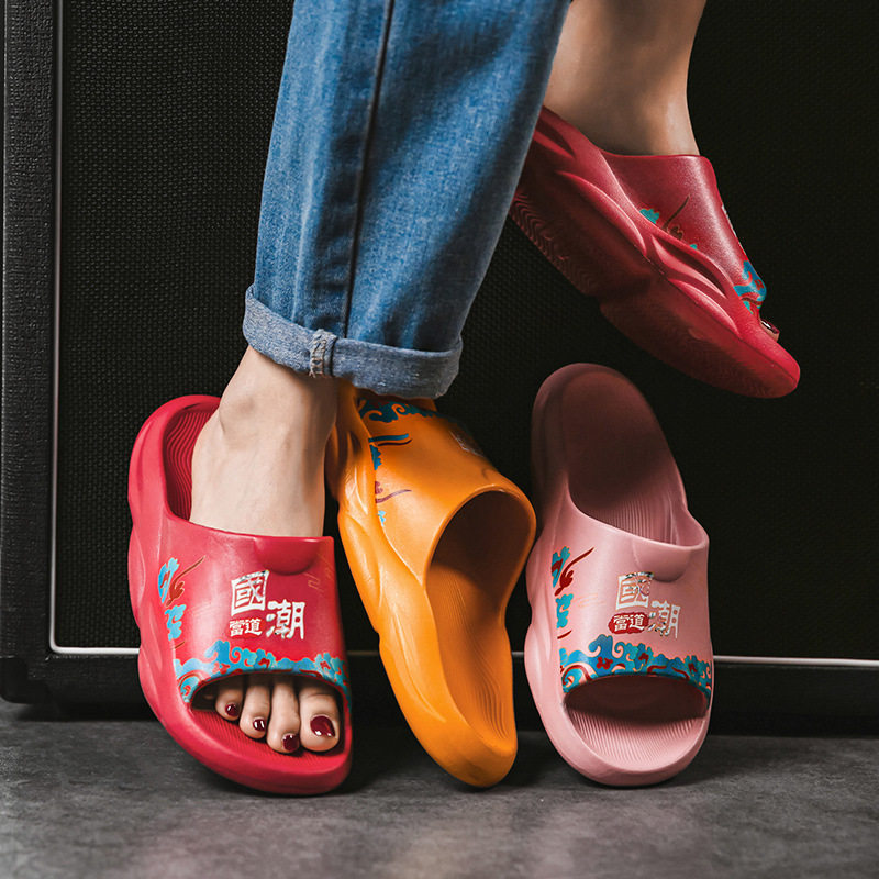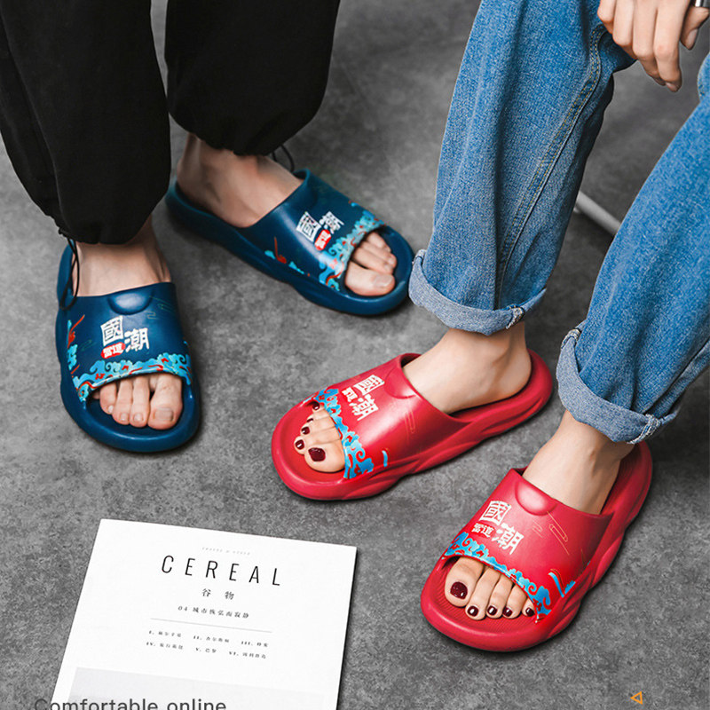 Летние тапочки, модные трендовые нескользящие слайдеры для влюбленных