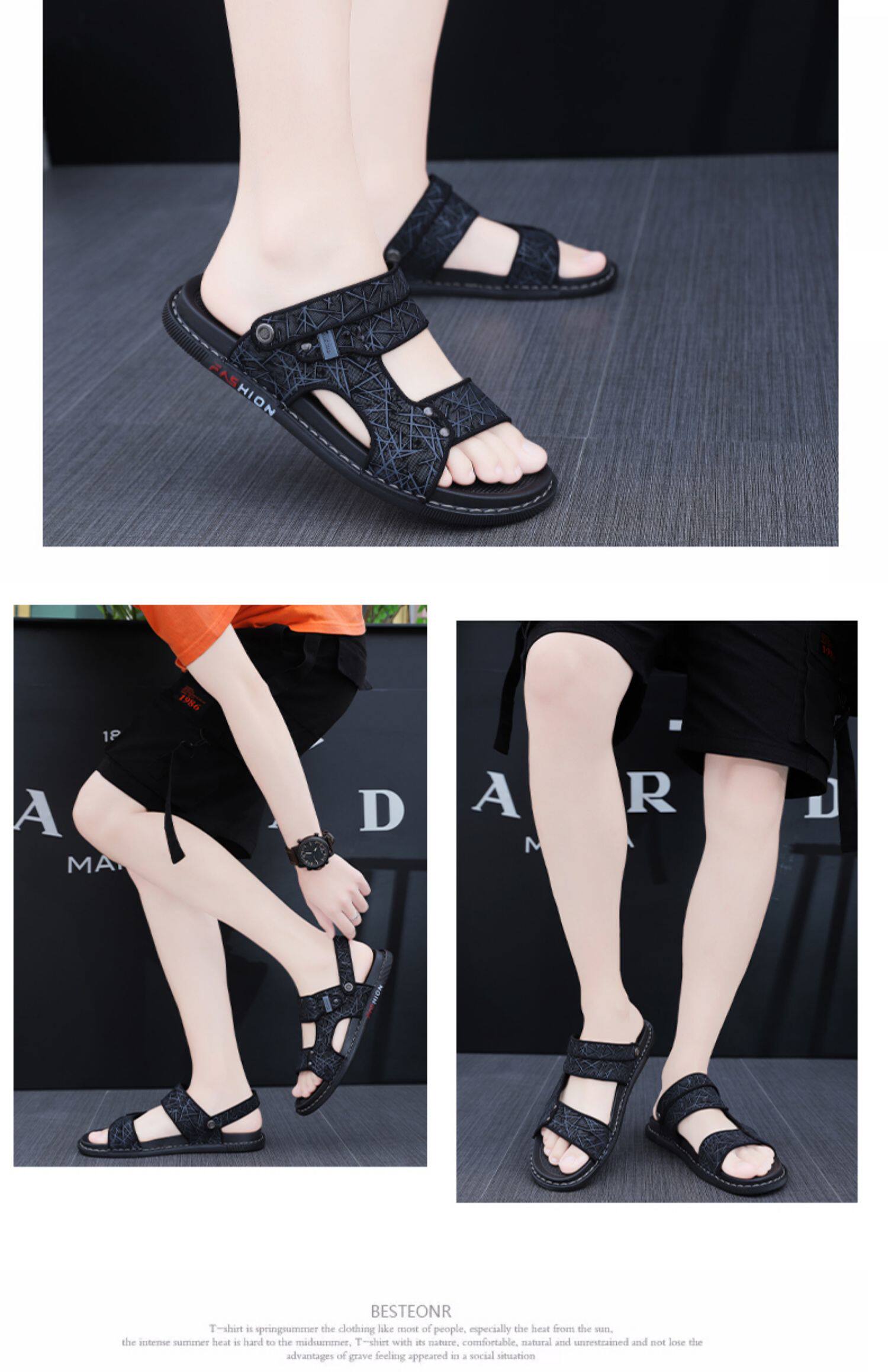 Летние трендовые тапочки, нескользящие износостойкие спортивные слайдеры, пляжные сандалии для отдыха, мягкая подошва