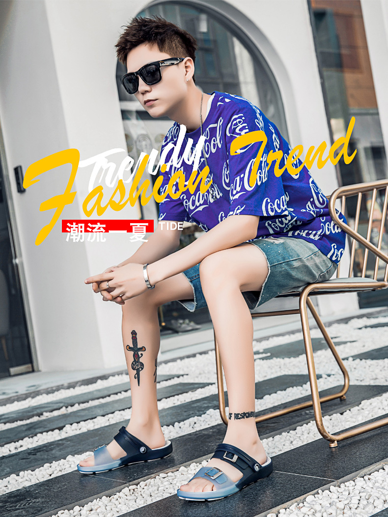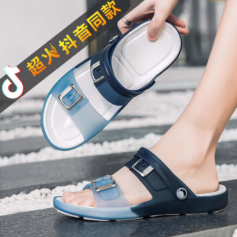 Летние тапочки, нескользящие износостойкие пляжные трендовые слайдеры, синие сандалии, подходит для подростков, мягкая подошва