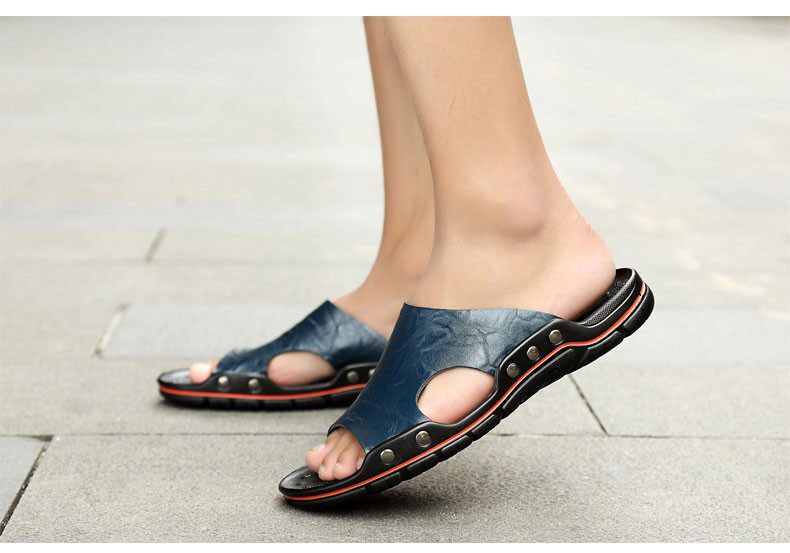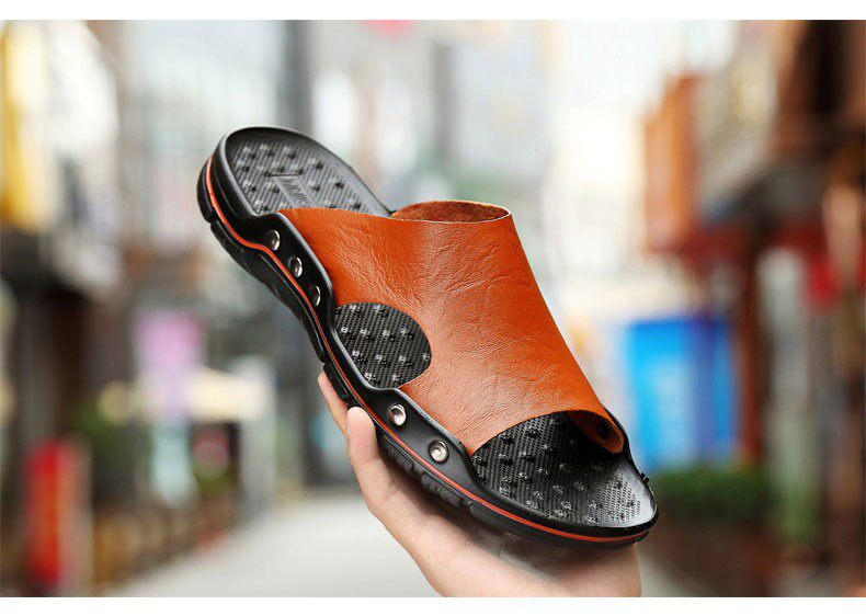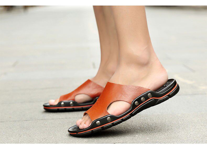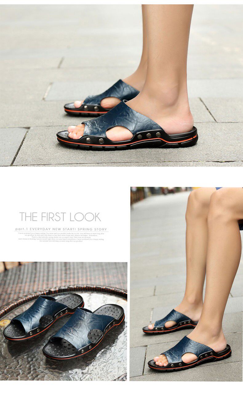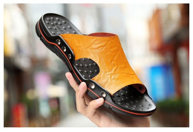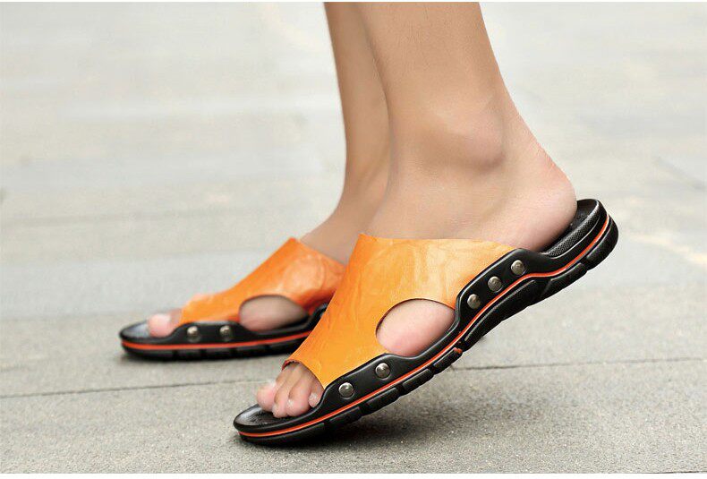 Летние туфли для мужчин подлинные кожаные тапочки для мужчин