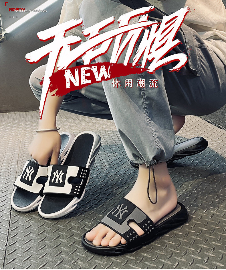 Летние трендовые нескользящие тапочки, спортивные пляжные слайдеры, большой размер, мягкая подошва, популярно в интернете