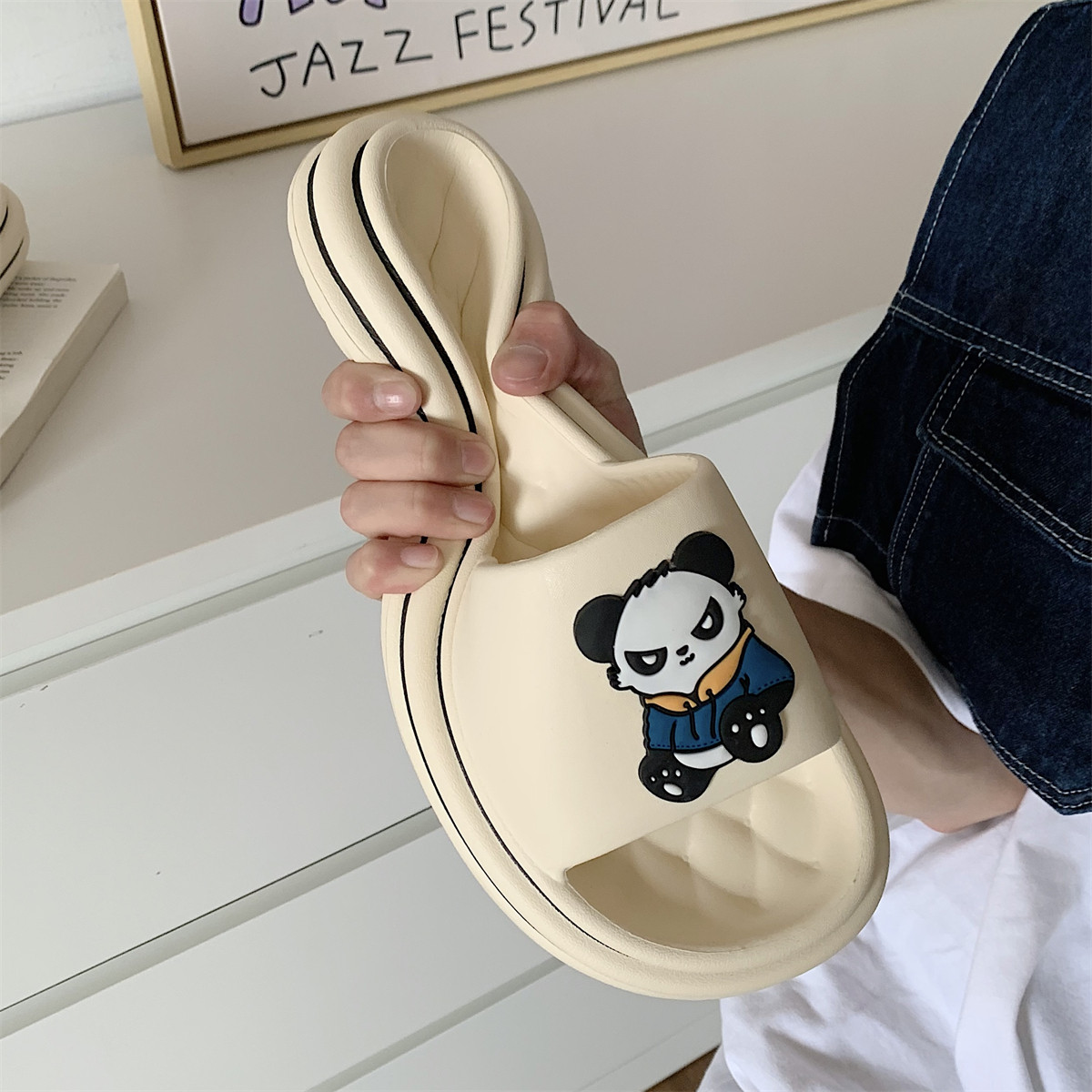 Летние милые слайдеры, мужские модные нескользящие тапочки, мягкая подошва