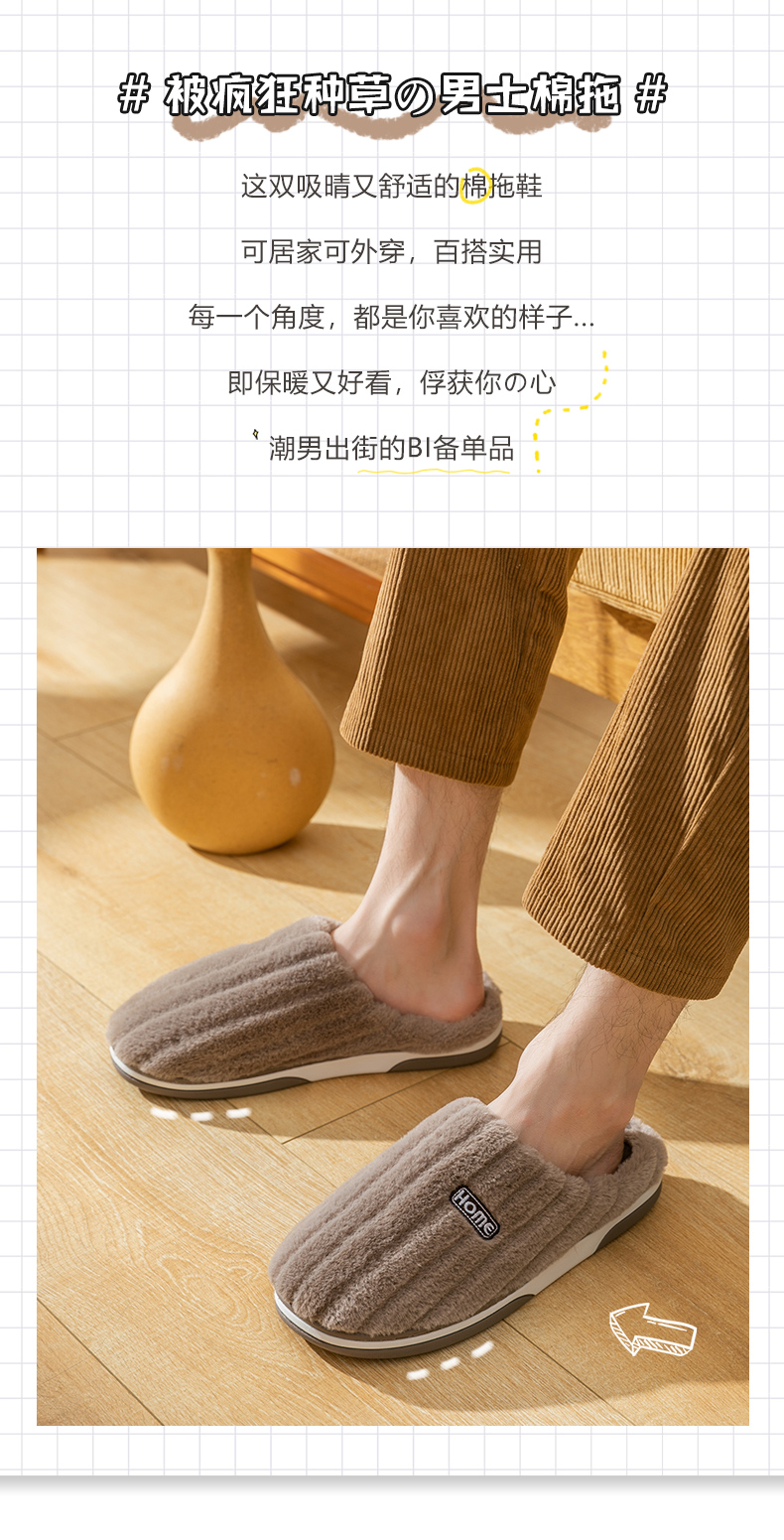 Демисезонные тапочки, мужские флисовые нескользящие туфли, большой размер