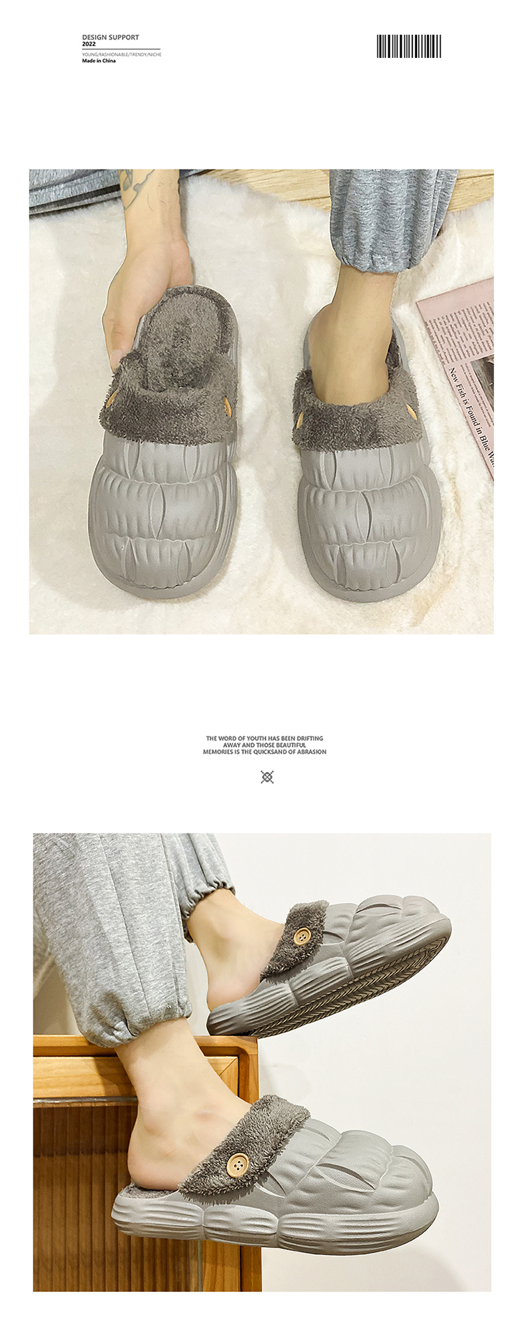 Демисезонные флисовые удерживающие тепло тапочки, нескользящие туфли, большой размер