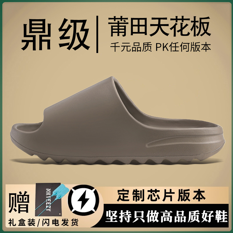 [莆田奢椰子拖鞋og yeezy高,版本正品夏季防滑厚底踩屎感一字拖潮]