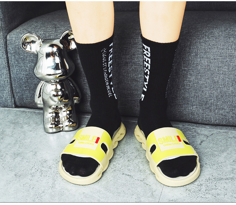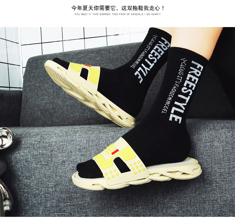 Летние тапочки, нескользящие пляжные спортивные слайдеры, популярно в интернете, мягкая подошва, подходит для подростков