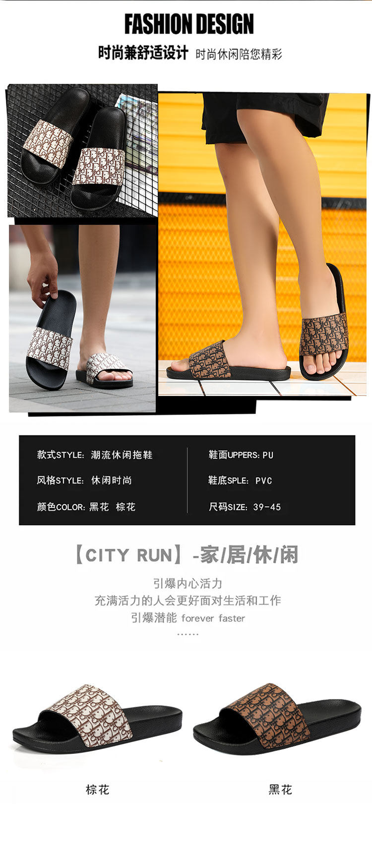Тапочки, нескользящие летние трендовые слайдеры, полиуретановые туфли