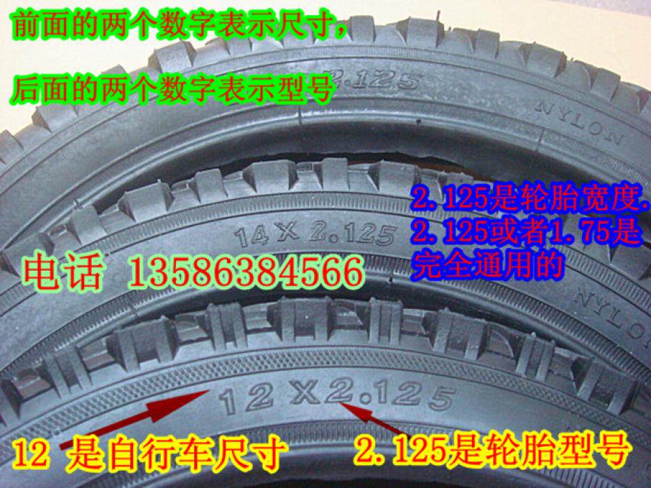 Два числа перед велосипедной шиной указывают на размер 12,14,16,18 дюйма, а следующие 2,125 или 1,75 таблицыМодель