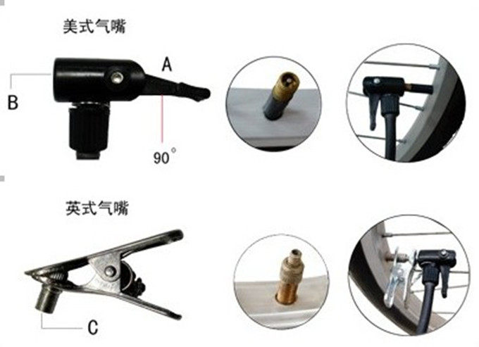 Британские клапаны: традиционные велосипеды в основном имеют такого типа клапана. При закачивании этого типа автомобиля просто подключите металлический интерфейс на переднем конце воздушного цилиндра непосредственно к воздушной форсунке автомобиля.