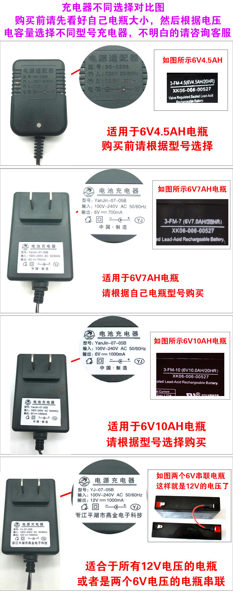 Во -первых, аккумулятор составляет 6V4AH или 4,5H или 5AH, соответствующее зарядному устройству 6V500MA