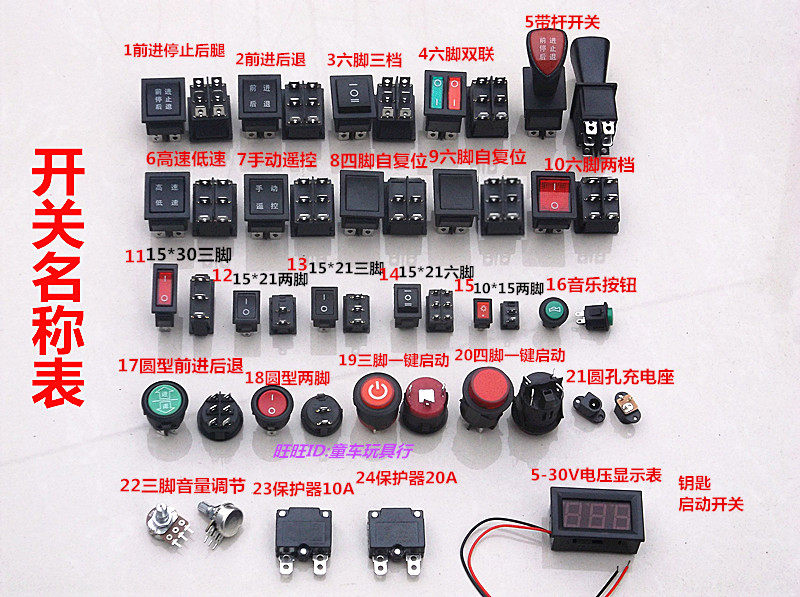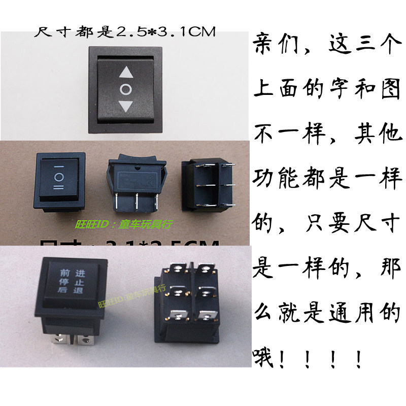 Различные переключатели на детских электромобилях, с переключателями питания, дистанционно управляемым переключателям педали,Вперед и обратный переключатель преобразования,ШагПолучение, форма круглая, квадратная, прямоугольная и т. Д., Слишком много типов,Клиенты могут сфотографироватьсяПокажите нам то же самое или похожие.