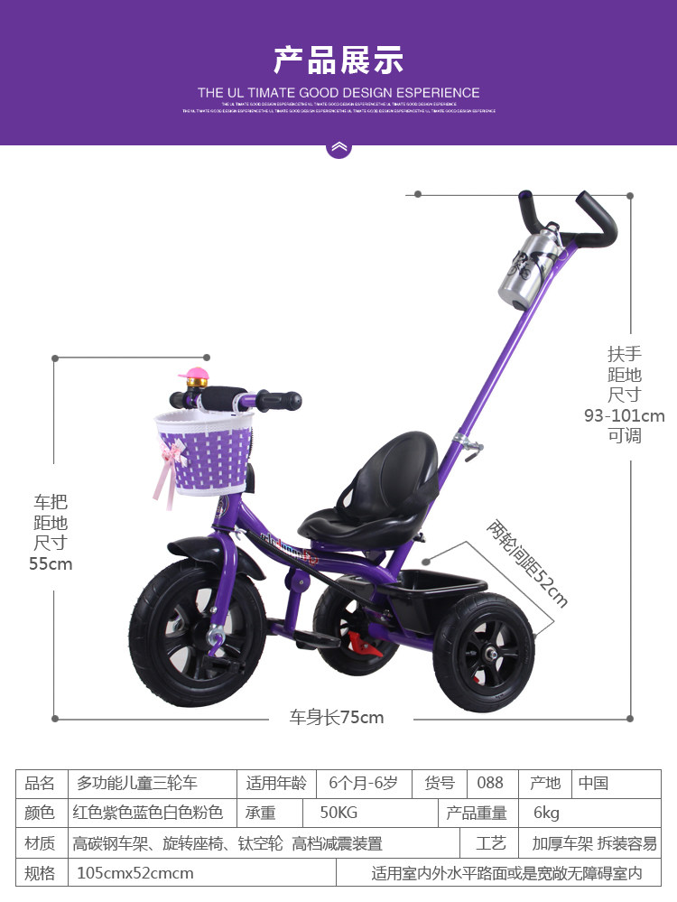 Детский трехколесный велосипед с аксессуарами, детская прогулочная коляска для младенца, ручка