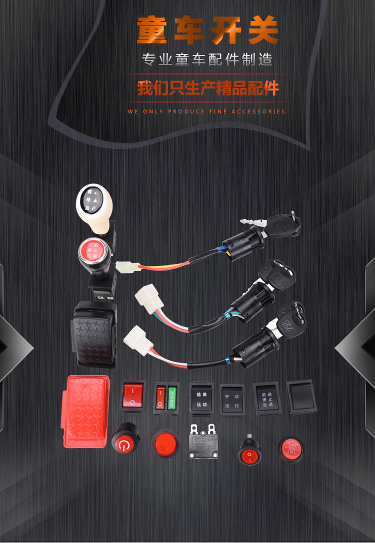 Электрический электромобиль, кнопка, педаль, переключатель с аксессуарами