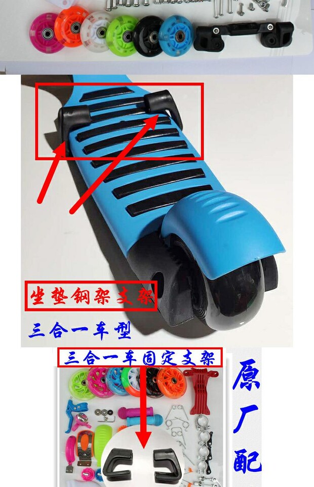 Детский самокат, универсальные аксессуары, пластиковая подушка, «три в одном», фиксаторы в комплекте