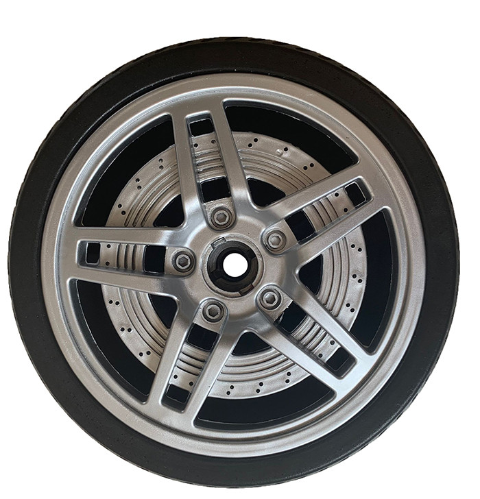 Разница между передними и задними колесами заключается в том, что задние колеса установлены с дополнительным цветом сливы, который можно удалить.