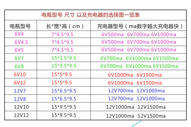 Электрическое зарядное устройство, универсальные адаптеры питания, 6V500AH, 12v