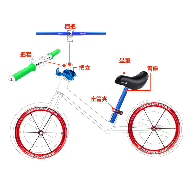 Детский модифицированный беговел с аксессуарами, ходунки, велосипедный вынос, рукоятка, велосипедный подседельный штырь, подушка, колесо