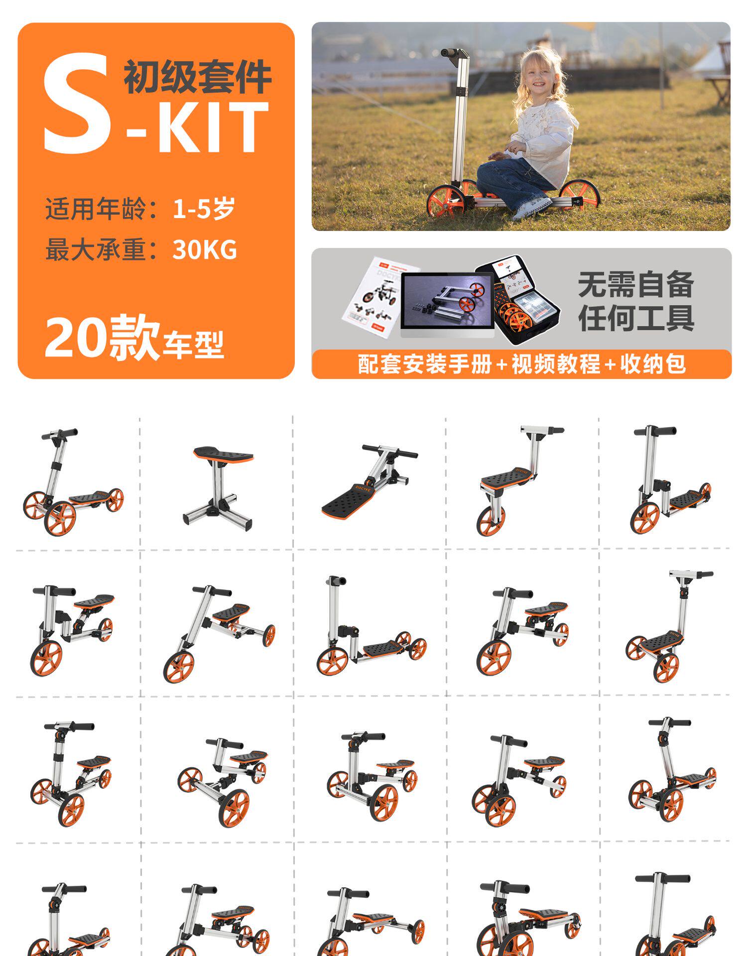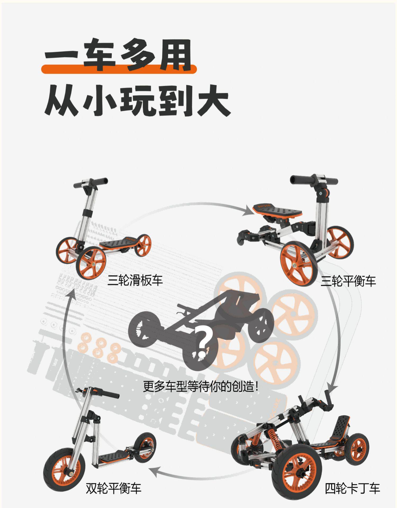 DOCYKE Вариационный конструктор, универсальный модульный модуль, трехколесный четырехколесный автомобиль, чехол для проездного, картинг