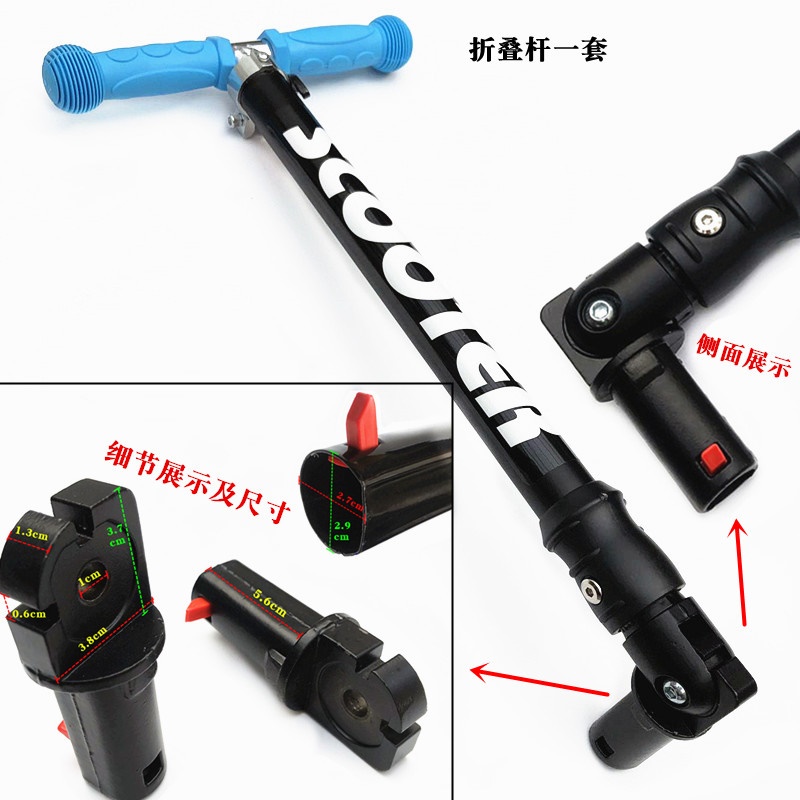 Детский самокат с аксессуарами, базовая плита, замок, складной тормоз