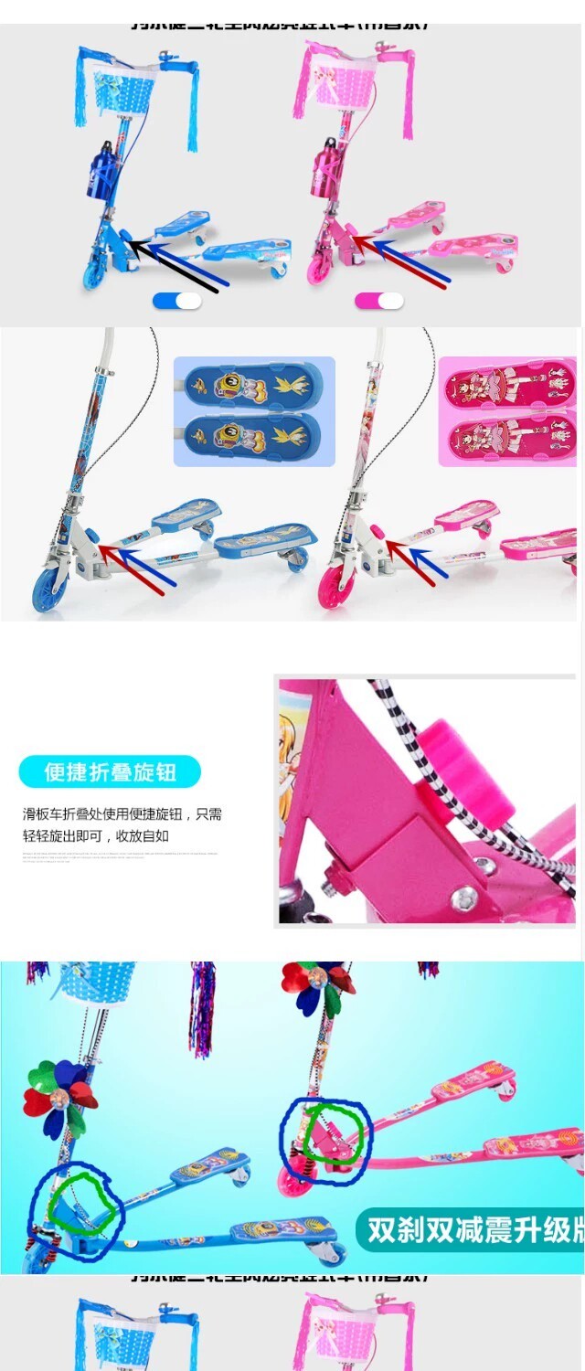 Детский универсальный складной шелковистый пластиковый самокат с аксессуарами