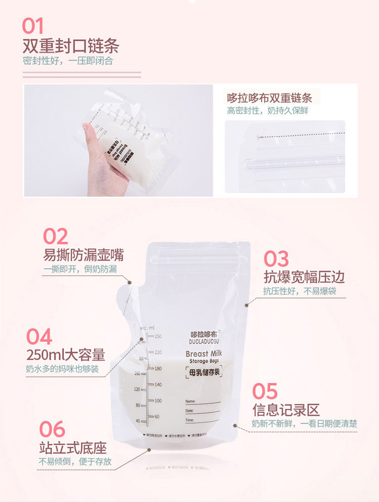 Ёмкость для хранения молока для молодой матери, хранилище, 250 мл, 60 штук