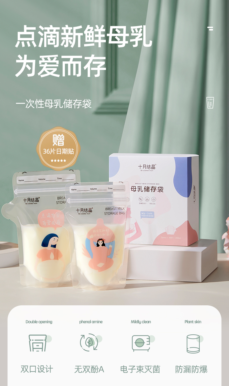 十月结晶 Маленькая ёмкость для хранения молока, сумка для хранения, 120 мл, 150 мл, 200 мл, 32 штук
