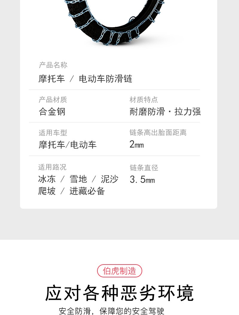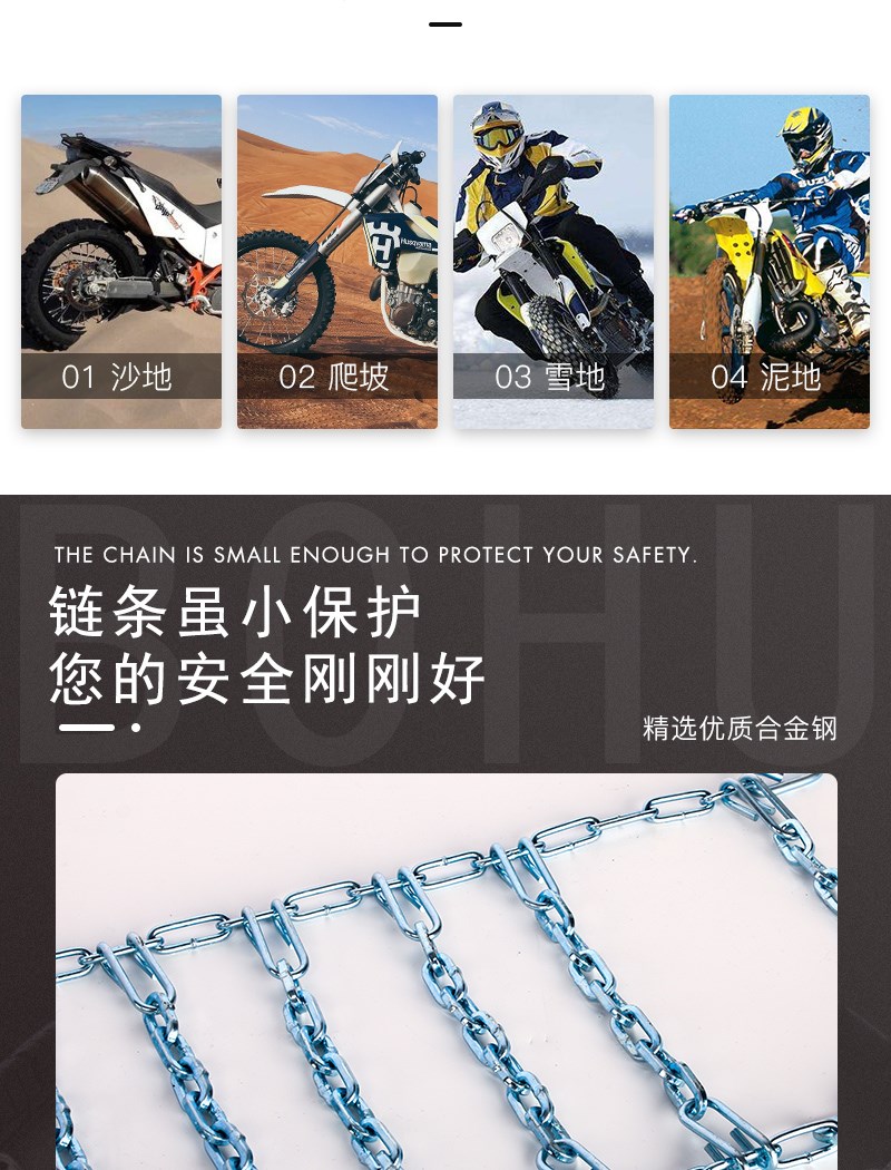 Мотоциклевая жирная шрифта и консольная цепь Электромобиль Электромобиль Anti-Ski Chain 3.00-18110-90-16 Сплав Стальная цепь
