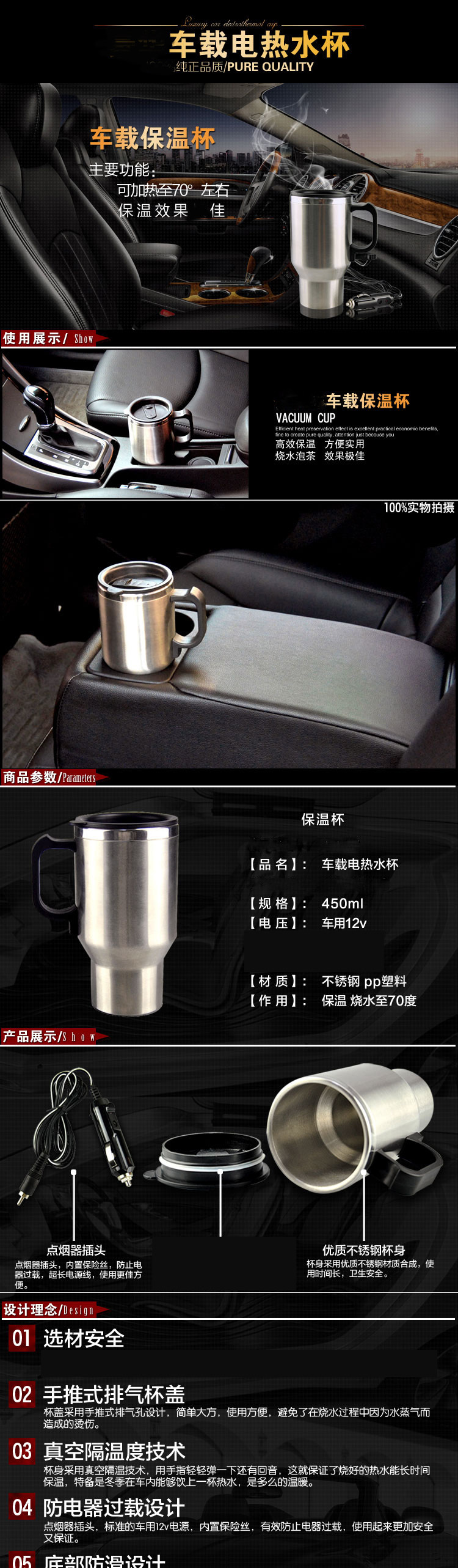 那卡 Стакан, горячий и холодный чайник, вкладыш из нержавеющей стали, 12v