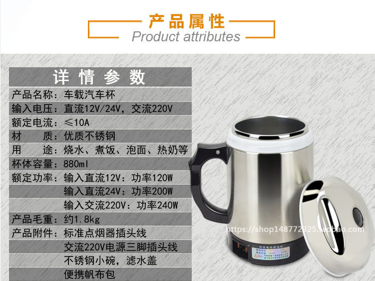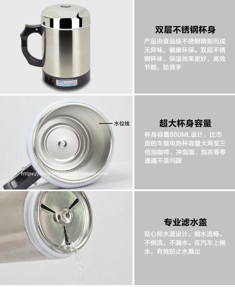 Лейкэн -автомобиль из нержавеющей стали Электрический нагрев, вареная вареная вареная вареная водяная чашка.
