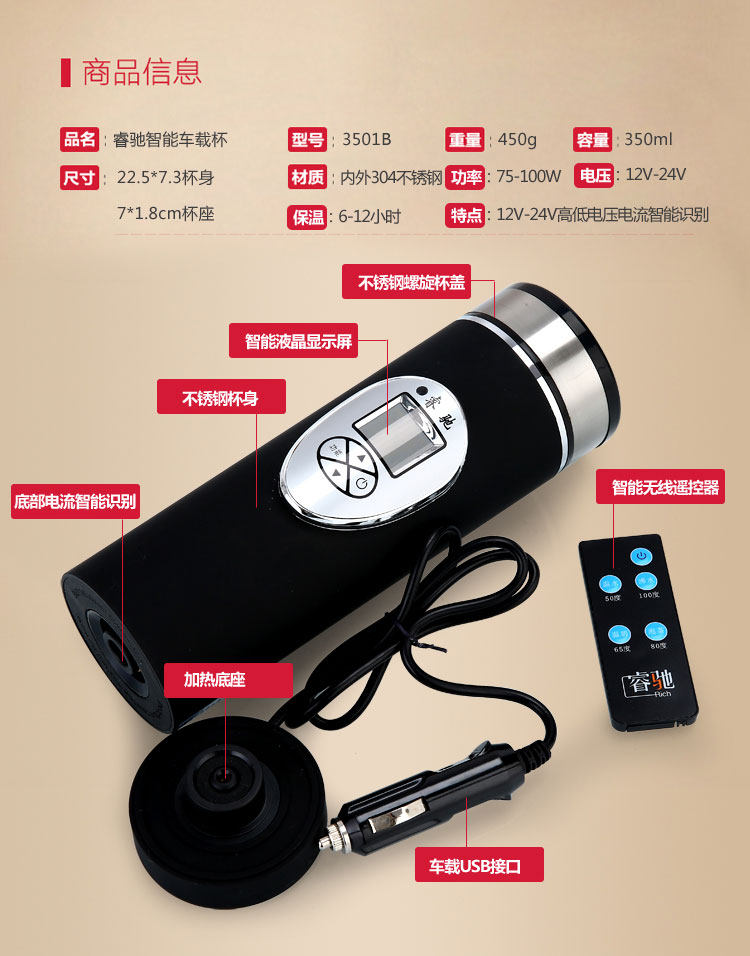 Портативный стакан для путешествий, чайник из нержавеющей стали, 12v, объем 304