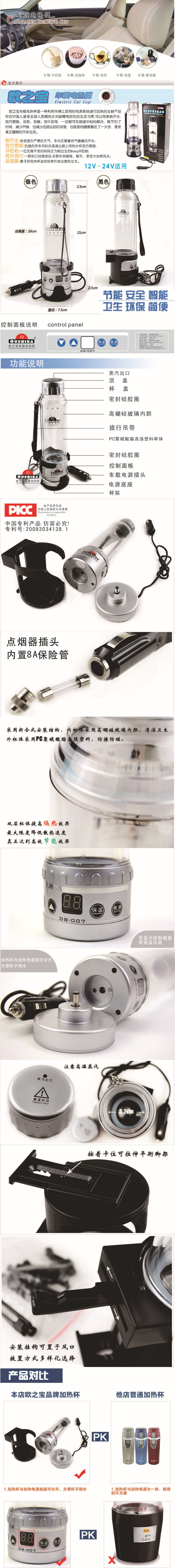 | Описание продукта | Электрическая чашка горячей воды OU Zhibao, как портативный продукт для деловых поездок, самодиральных людей и семейных путешествий. Он использует полный прозрачный дизайн чашки с двойным слоем, который не только увеличивает красоту чашки, но и облегчает Пользователи для температуры воды. В любое время в контроле, поскольку используются стеклянная внутренняя чашка и пластиковая чашка ПК, считается, что он учитывает интимное рассмотрение анти -высоты во время использования и полностью рассмотреть проблему гигиены питьевой воды и анти столкновение.Поставка заглушек сигарет может использовать электрические чашки для кипячения водой во время вождения во время вождения, а работа индукционной кнопки Touch -типа делает пользователей более безопасными и удобными., Множество гарантий.OU Zhibao 0B-007 CAR Electric Cup-это новый продукт, который использует существующую систему электроэнергии на автомобиле. Вместимость: 280 мл. Его можно использовать для кипячения водой, замачивания лапши мгновенного, чая, кофе, молока, молока и т. Д., Все и т. Д. Это может быть легко решено на пути, то есть сэкономить время, сокращение расходов и сокращение количества раз, чтобы пойти в придорожные магазины, то есть большой шаг к здоровью и наслаждение настоящей здоровой жизнью! |