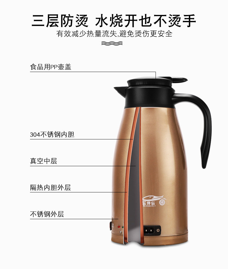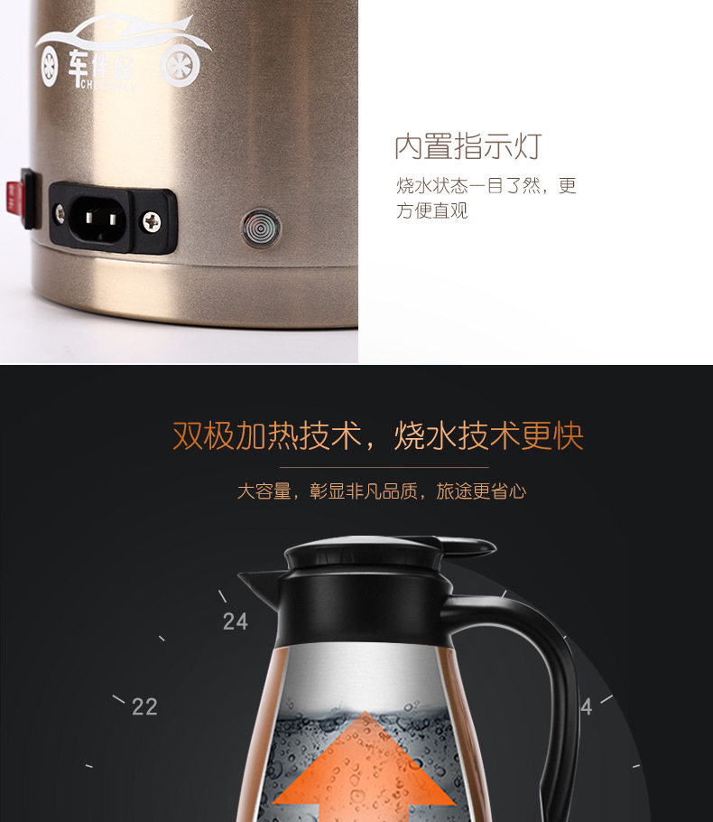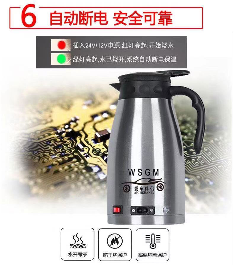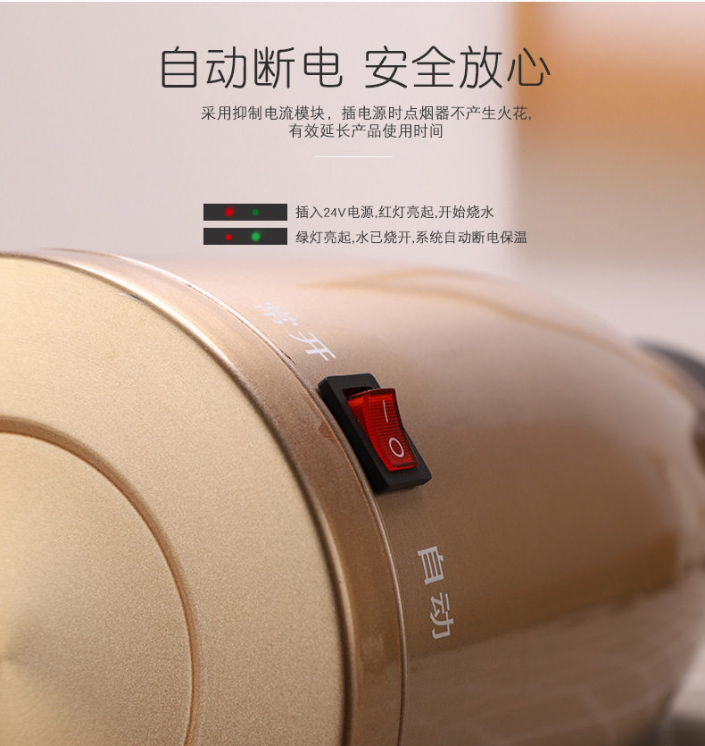 Новый автомобиль -партнер автомобиль -перевозчик электрический чайник 24 В Специализированная нагревательная чашка для водяной чашки с двойным слоем 304 Кеттл из нержавеющей стали.