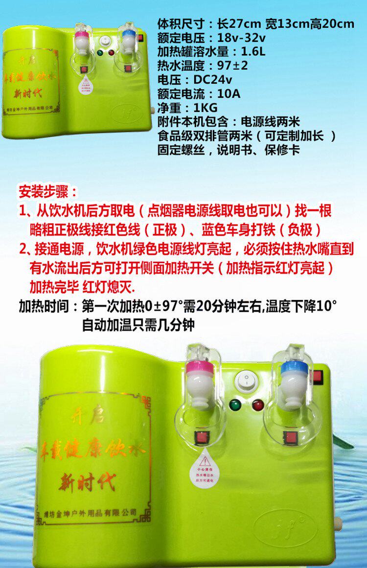 Этот продукт является небольшим, легким весом, высокой температурой нагрева и разумно использует источник питания транспортных средств.Низкое напряжение, безопасная, интуитивная работа, простая и удобная, используйте двойную конструкцию управления температурой, 12 часов без выключения интеллектуального дозатора воды без какого -либо влияния на аккумулятор!Чтобы решить путаницу воды и наблюдать за водой для большинства водителей, проблема недостаточных тепловых бутылок!