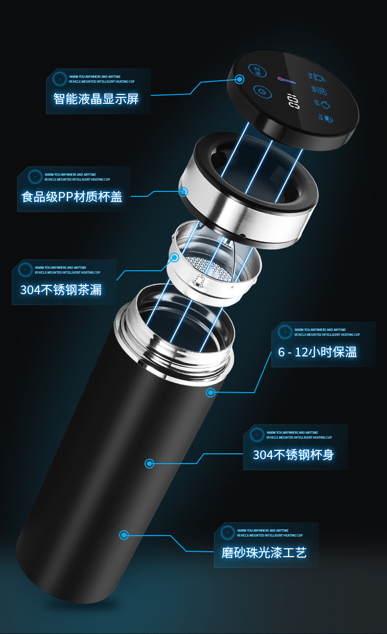 Автомобильная вода чашка отопление изоляции Умная кипящая чайник 12V24V Автомобиль 100 -градусный автомобильный водонагреватель