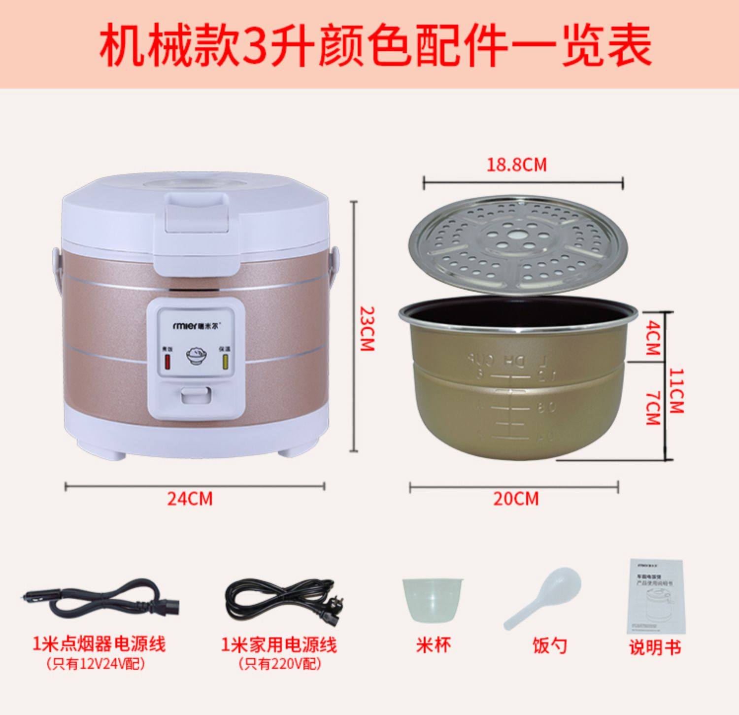 Рисоварка, универсальное дорожное снаряжение, 24v, 12v