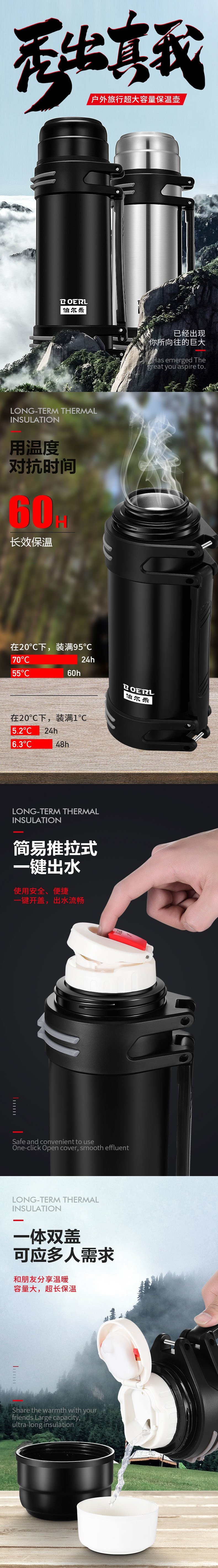 Мужской вместительный и большой стакан, чайник из нержавеющей стали для путешествий, портативная чайная чашка, 1000 мл