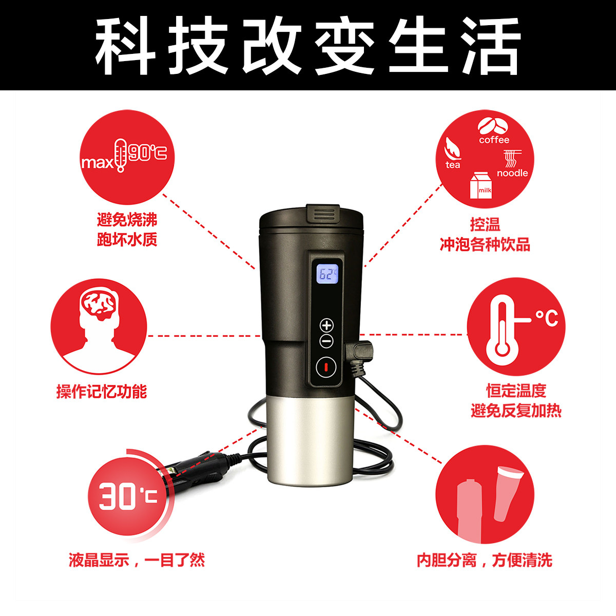 Чайник, умный стакан, объем 12, 12v, 24v